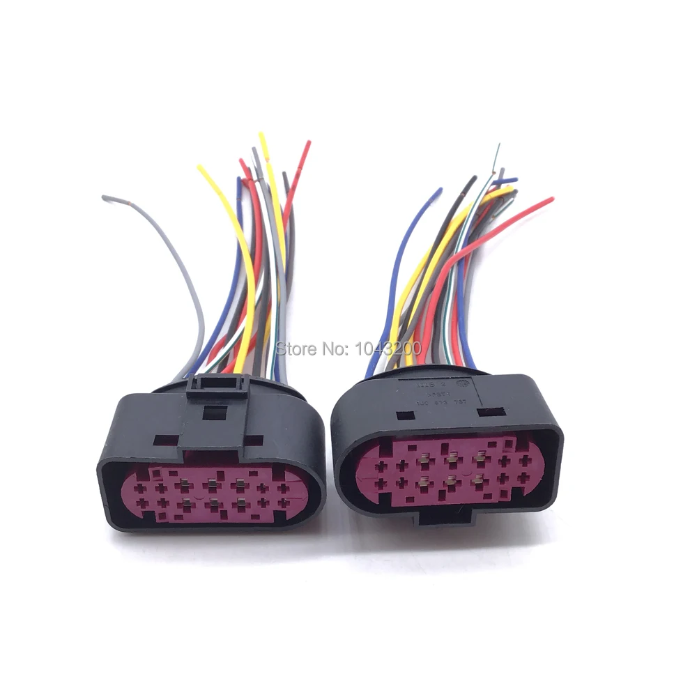 2 X For Audi VW Skoda Seat Xenon Headlight 14 Pins Plug Connector With Wire Cable 1J0973737 / 1J0 973 737