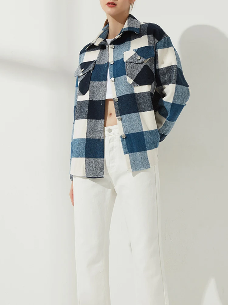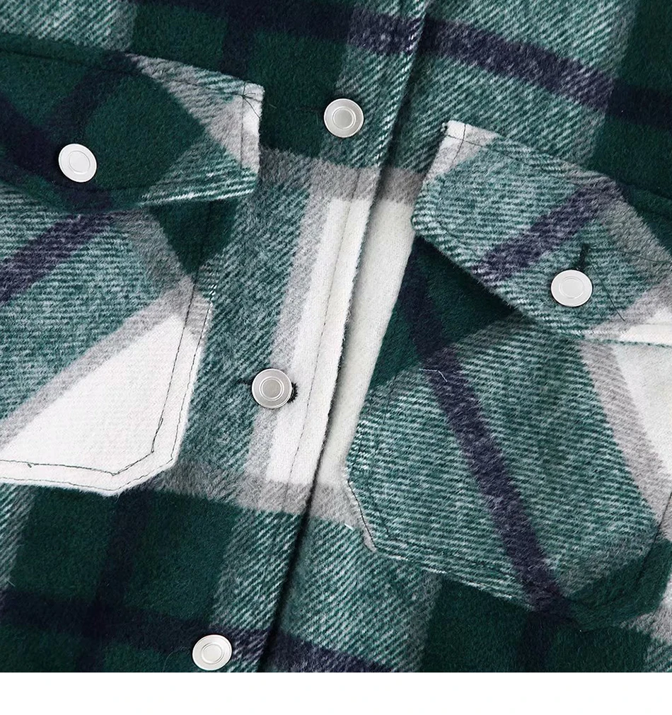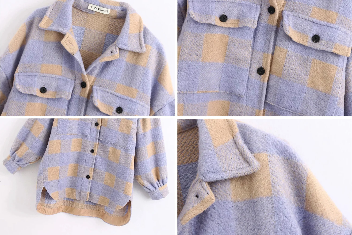 Autumn Winter Plaid Jackets Wool Blend Coat Fashion Button Thick Vintage Casual Office Warm Overshirt Ladies Outwear Chic Tops