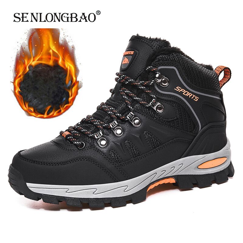 Brand Winter Men's Boots Plush Warm Men's Snow Boots Waterproof Men's Ankle Boots Breathable Handmade Outdoor Men Hiking Boots