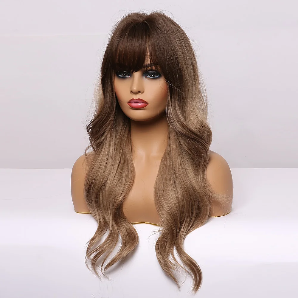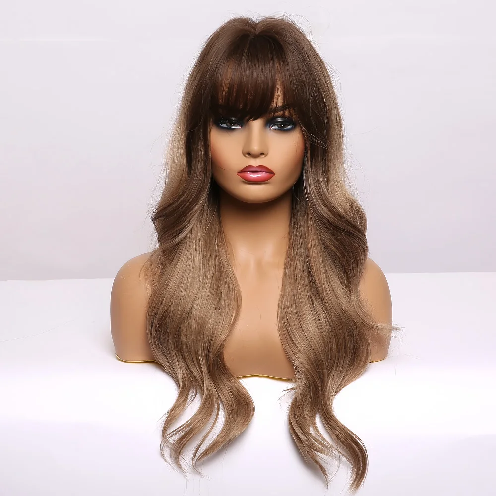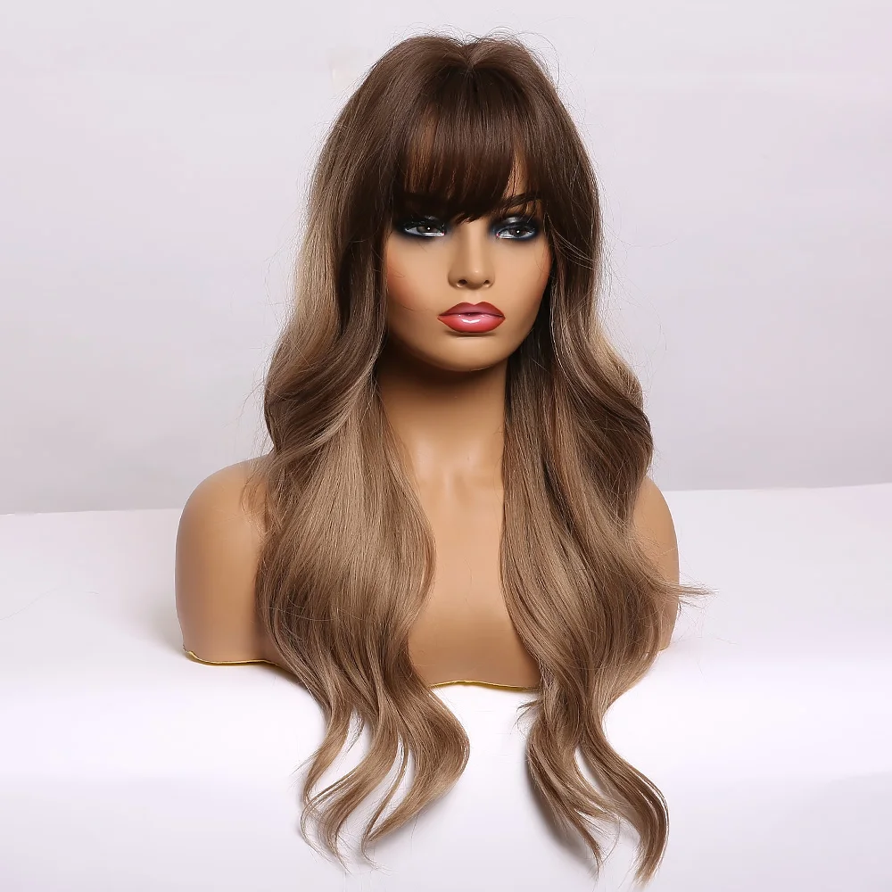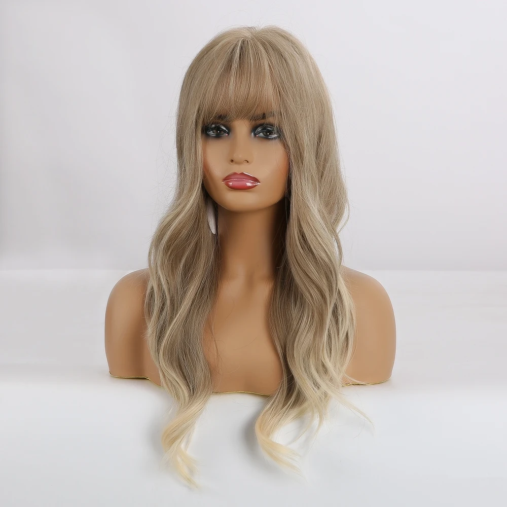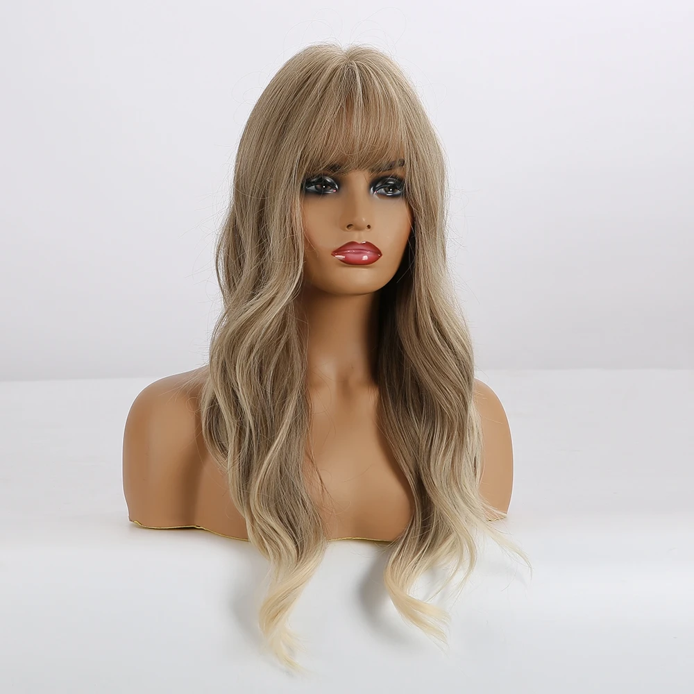 EASIHAIR Grey Ombre Wavy Wigs Long Synthetic Wigs for Women Wigs with Bangs Natural Hair Wigs Heat Resistant Cosplay Wigs