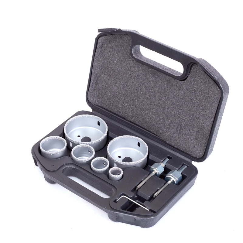 The hole drill set is versatile. Whether ceramic, tiles, clinker, brick, plasterboard, concrete or cement - the 6 different drill bits are suitable for all these materials