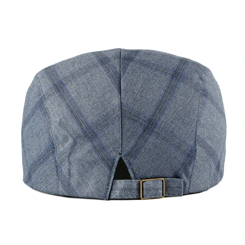 SHOWERSMILE Navy Plaids Beret Hat Men British Style Gatsby Male Falt Cap Spring Summer Male Ivy Retro Men's Checked Newsboy