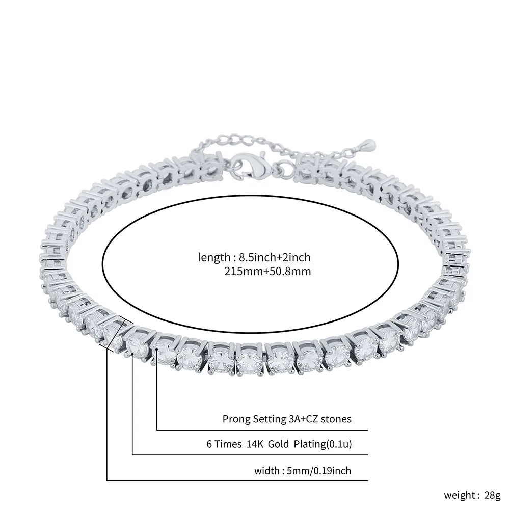 TOPGRILLZ Anklet 5mm/6mm Tennis Chain Anklet Iced Out Cubic Zirconia Hip Hop Punk Fashion Charm Jewelry For Gift Can Adjustable