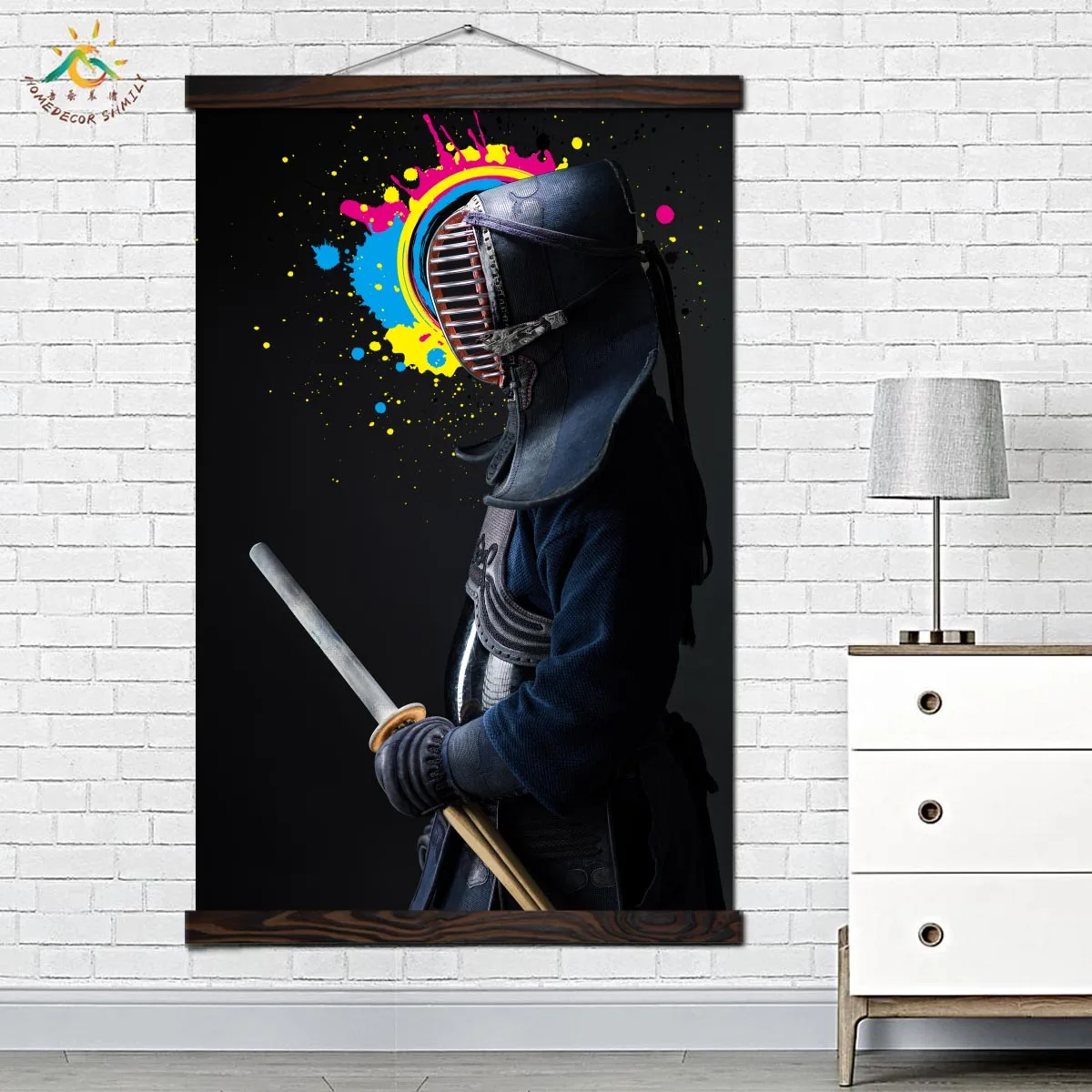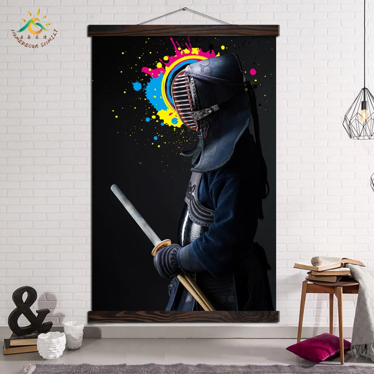 Wall Art Prints Poster Canvas Painting Scroll Frames Pictures Design Home Decoration Cool Black Japan Bushido Samurai