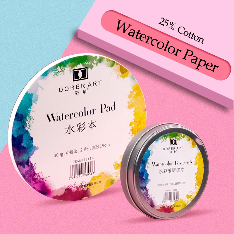 Watercolor Paper Postcard, 25% Cotton 140 lb (300 GSM) Round Watercolor Pad Travel Art Journal