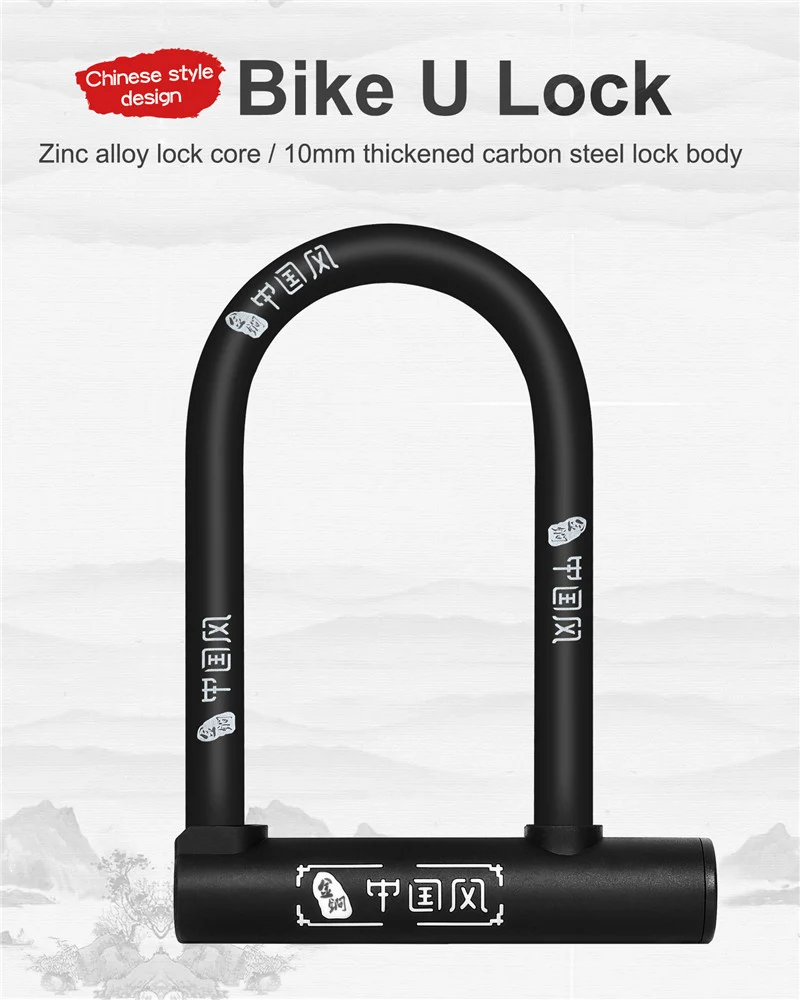 WEST BIKING Bicycle U Lock Anti-theft Steel Cable Security Cycling Lock Motorcycle Electric Scooter MTB Road Bicycle Accessories