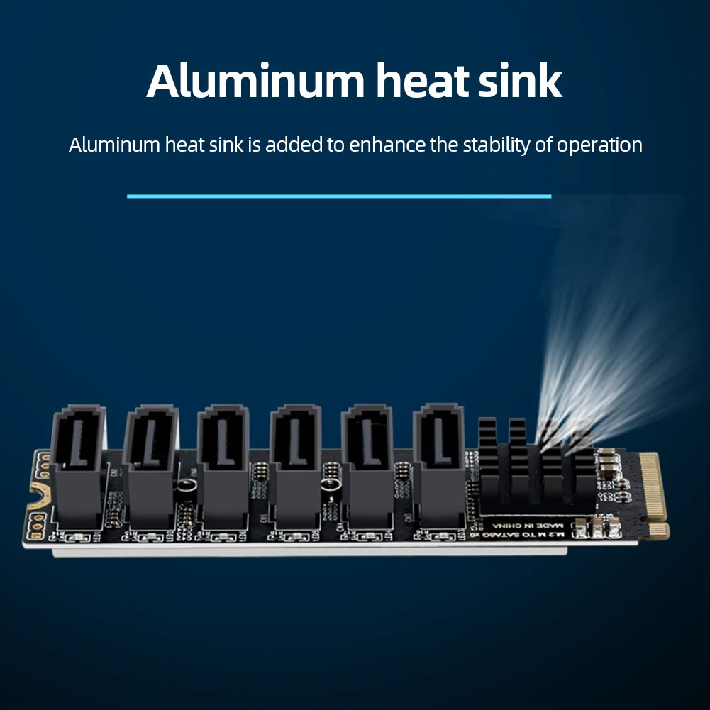 1. Scalability: The PCIE3.0 to SATA6G Adapter is a riser card that can expand your M.2 interface to six SATA 6G interfaces. It provides additional SATA interfaces, allowing you to connect more SATA devices, such as hard disks, optical drives, and so on, providing more storage space and data transfer options for your system.