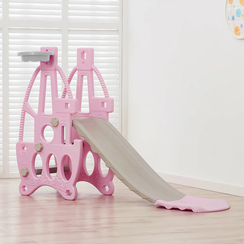 Our multi-functional set provides children with different playing experience indoors and outdoors. It combines a smooth slide, a sturdy swing, a basketball hoop and climbing ladders in one, any child can have great fun with it. All activity elements are appropriately sized for toddlers.