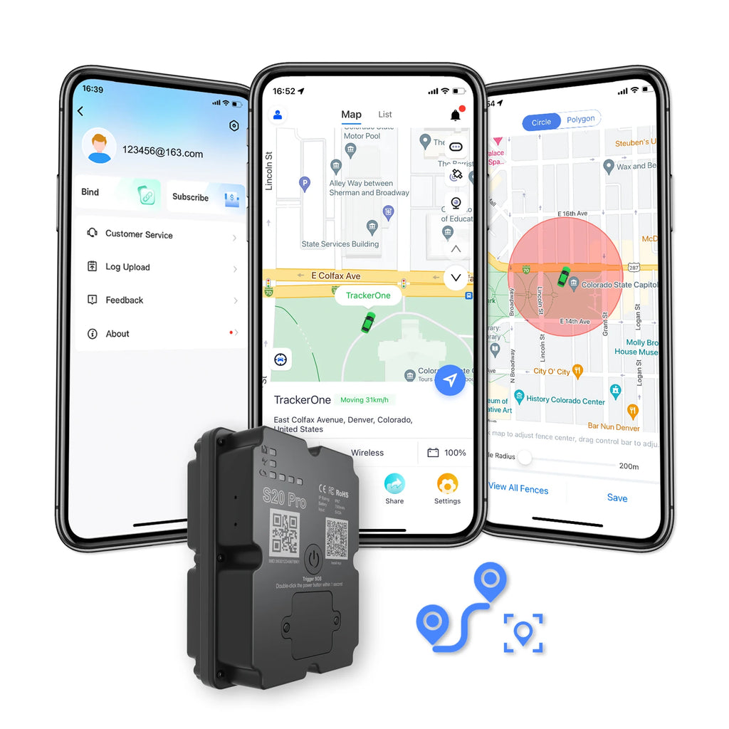 The GPS locator has unlimited distance tracking. Use our "TrackerOne" app, you can remote monitor your asset.