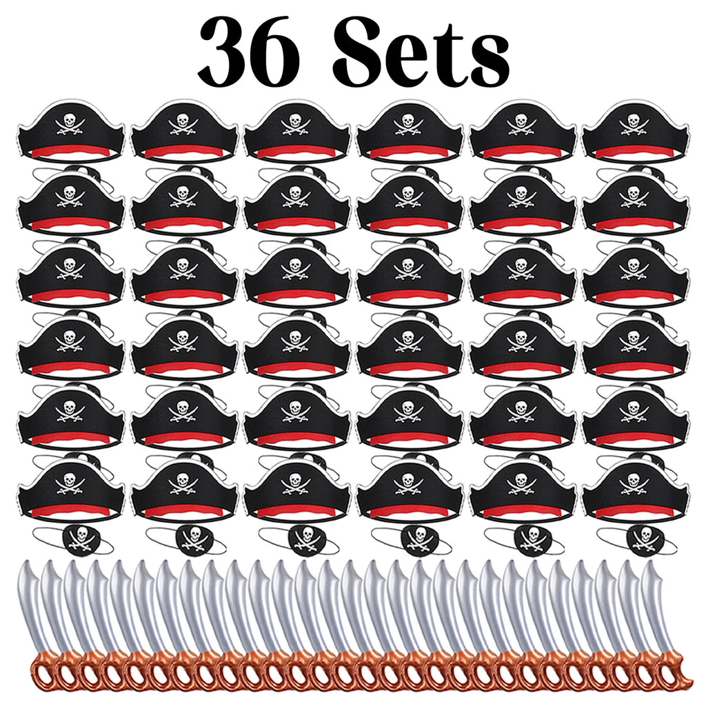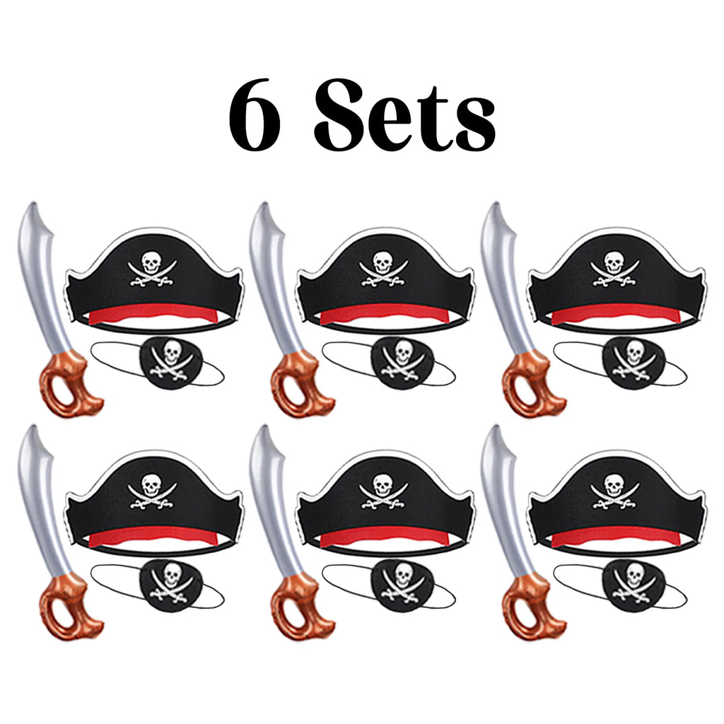 The pirate party set in bulk will satisfy your various needs in parties! You will receive felt pirate hats+pirate eye patches+ inflatable swords. The pirate hat has an elastic band in the back so it is suitable for both children and adults!