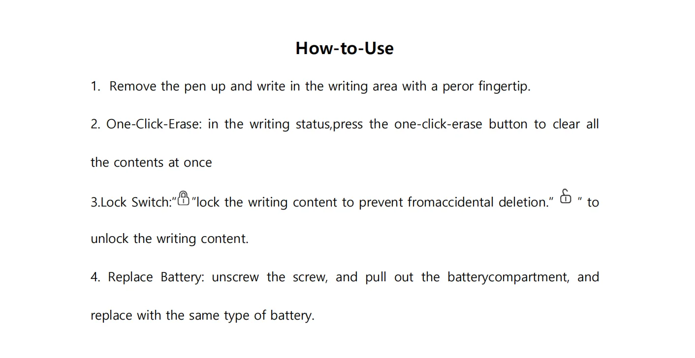 • Electric Button Battery Powered :Powered by an electric button battery, this writing board is designed to last long, providing endless hours of entertainment for your child.