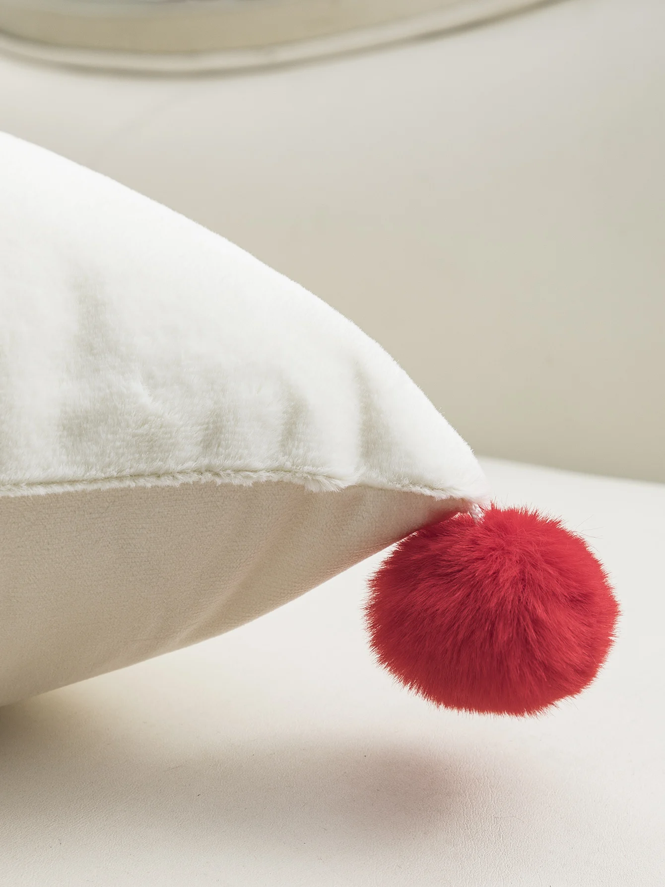 A Christmas themed red small ball letter waist pillowcase with Nordic modern embroidery technology used for decorating sofas and