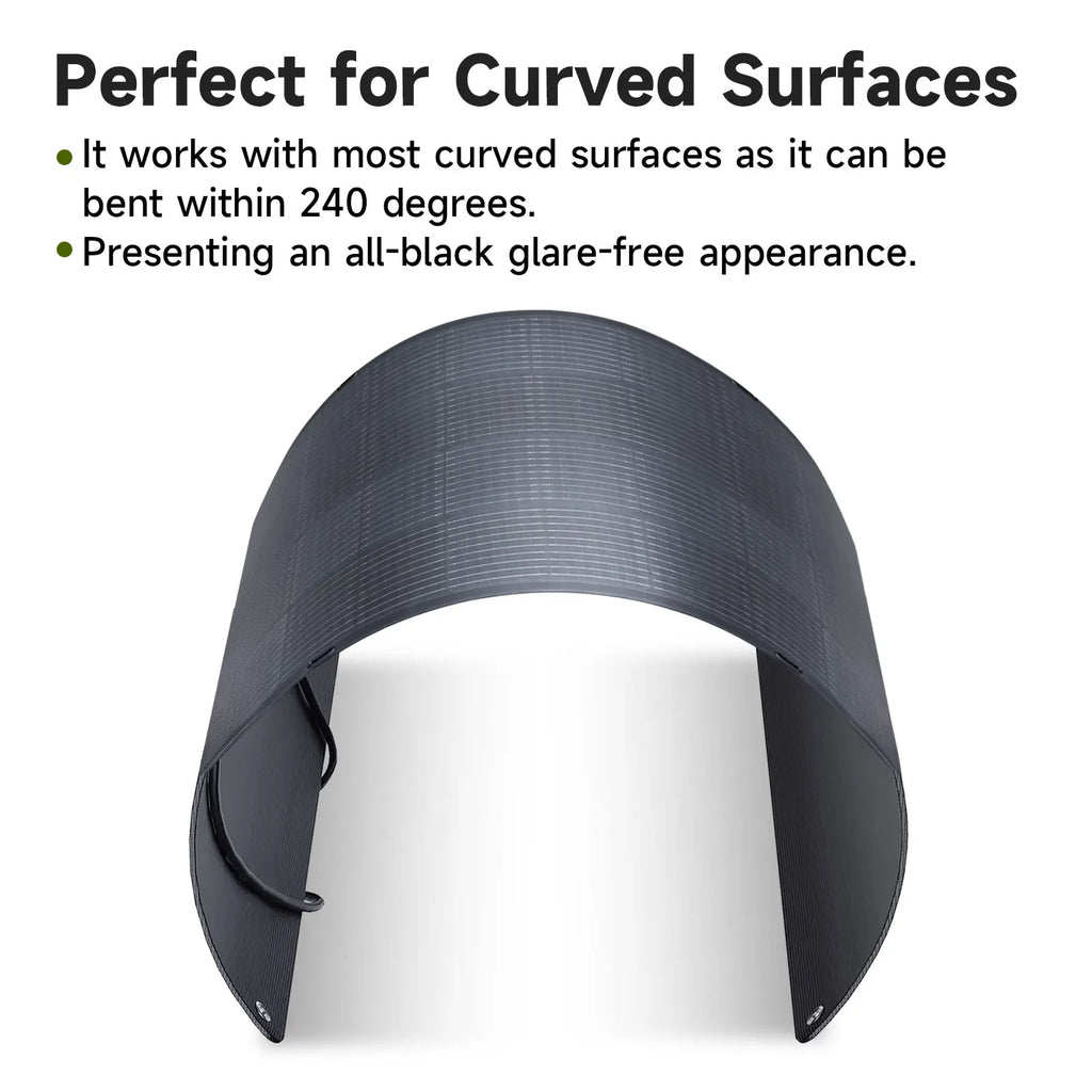 【Easy to Install and Use】Multi-Contact 4 output connectors can be used for any power station or home solar system. The included 6 straps and curved design allow it to be installed on trailer, boat, cabin, tent, car, truck, trailer, yacht, trailer, roof or any other irregular surface.