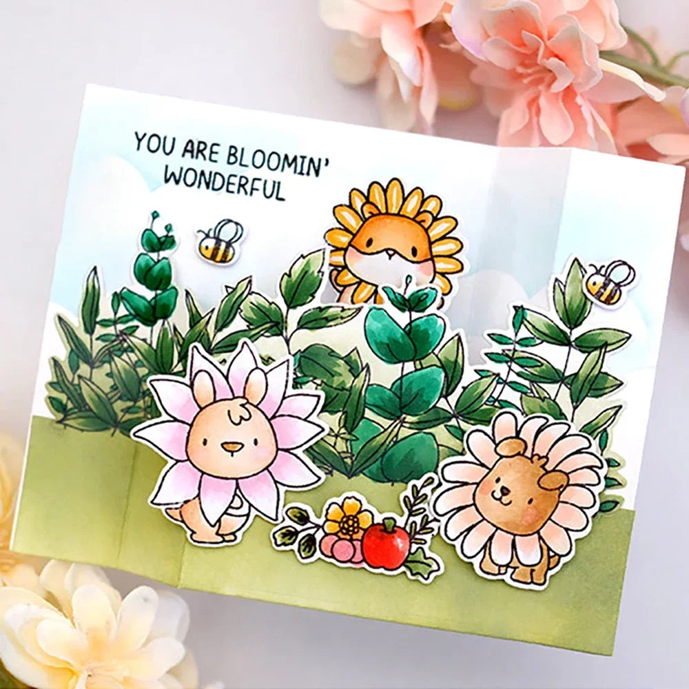 Birthday Cake Cute Frog Fox Animals Cutting Dies and Clear Stamps