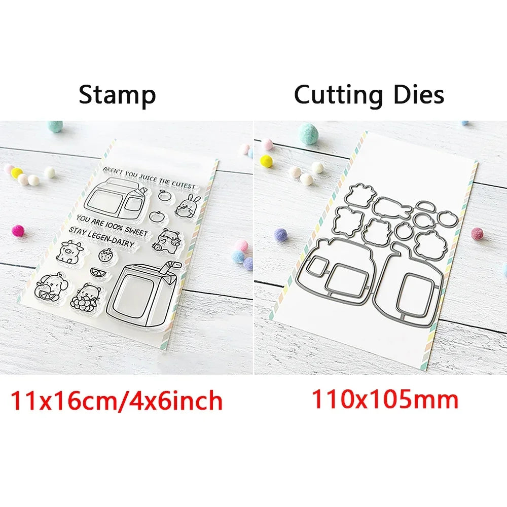 Birthday Cake Cute Frog Fox Animals Cutting Dies and Clear Stamps Bottle Thank You Words Dies For DIY Scrarpbooking Paper Craft