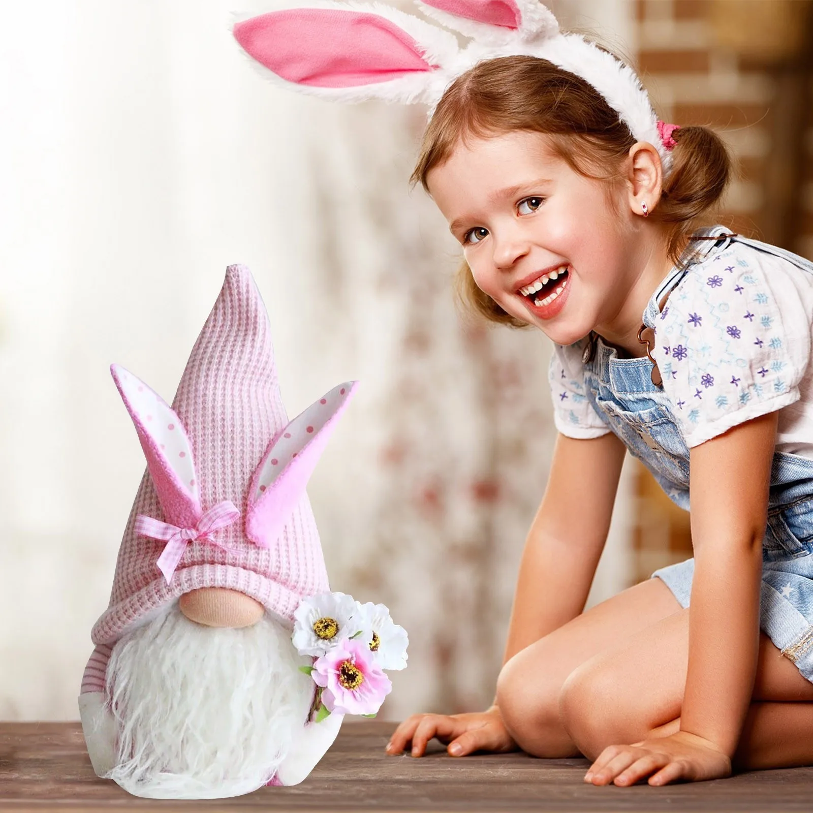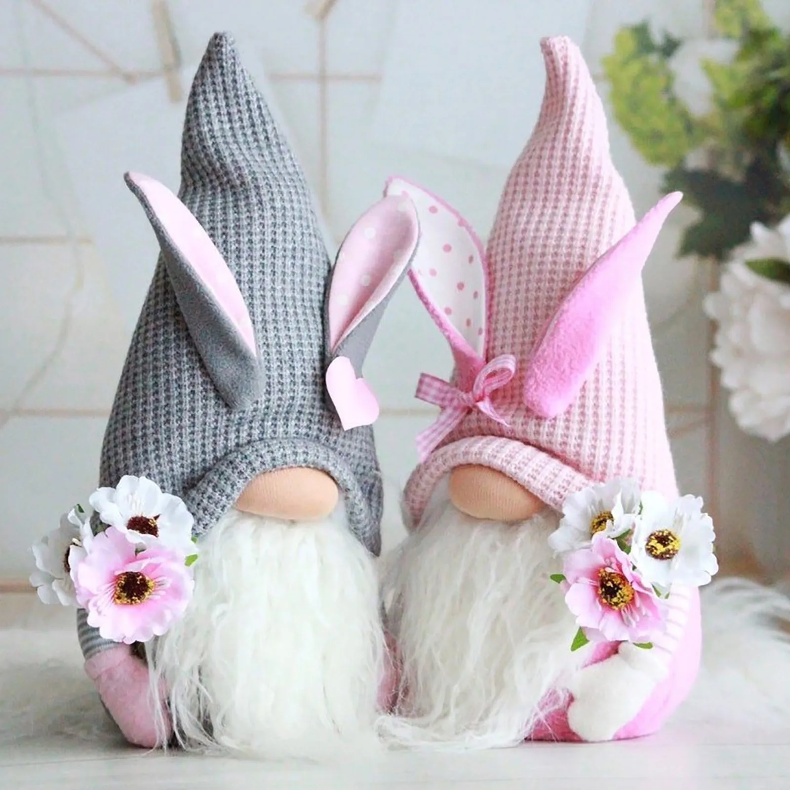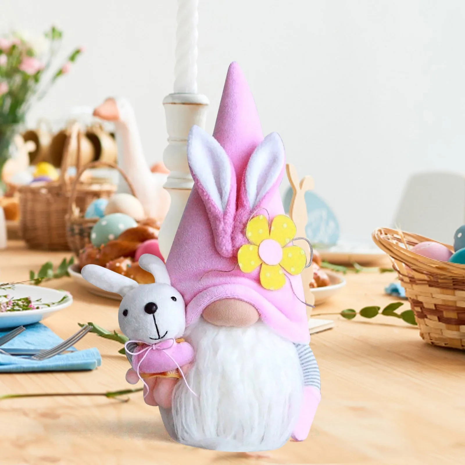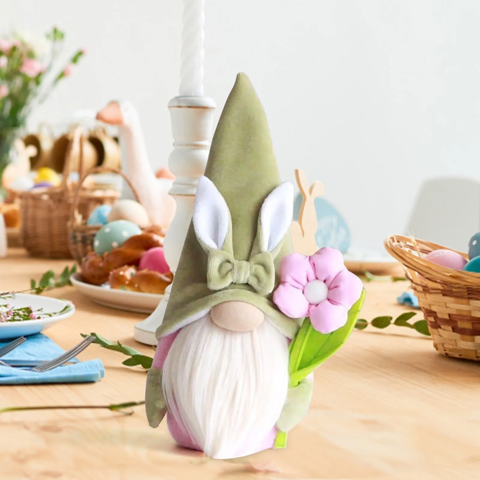 Easter Bunny Gnome And Flower Easter Decoration Ornament Gift Soft and Safe Material Easter Faceless Doll Indoor Ornament
