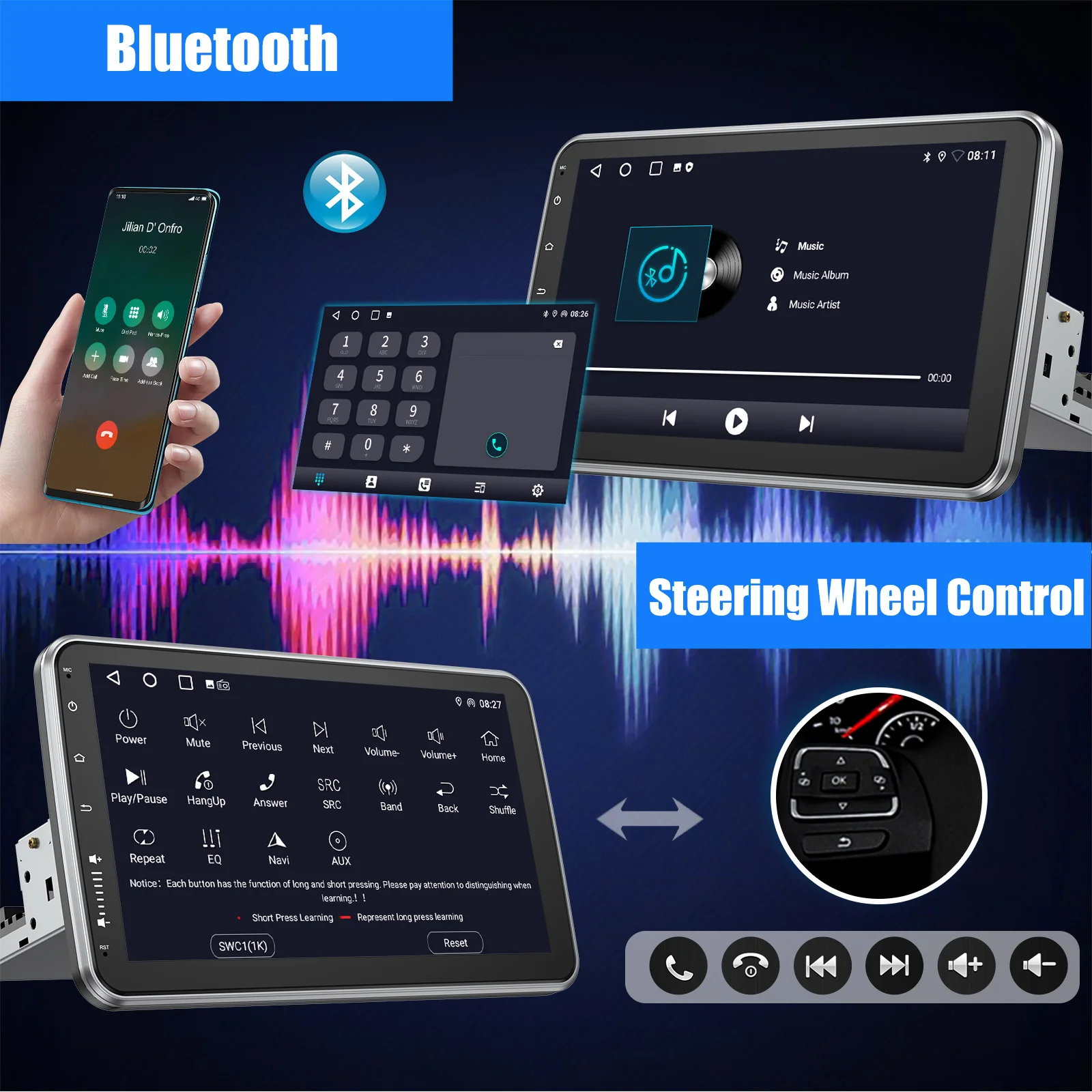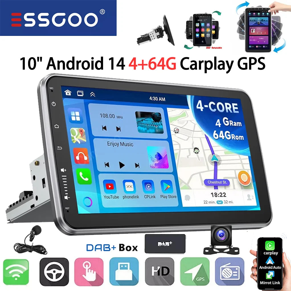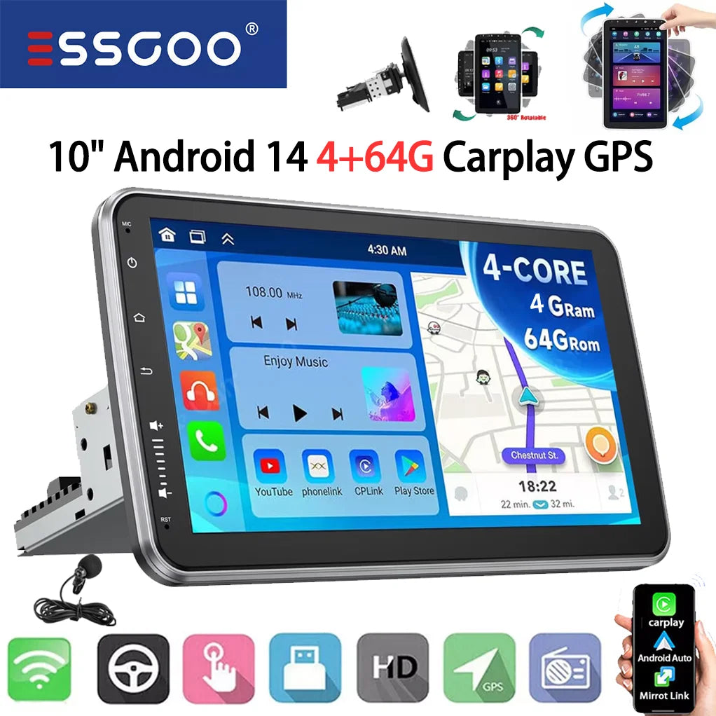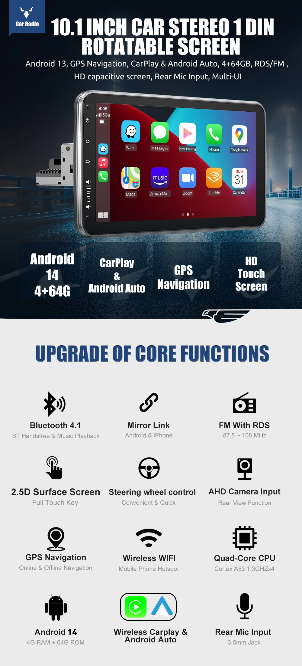 【10.1" Android14 Rotatable Car Stereo】This single din car stereo with high-definition 10.1 inch 2.5D tempered glass mirror touch screen,and which can be rotated by 180°.You can adjust the screen manually to make it display vertically or horizontally. Give you the most comfortable visual and touch experience.This car radio installation size is: 178(L)* 50(W)*145(D)mm.Please confirm whether the size is appropriate before buying.