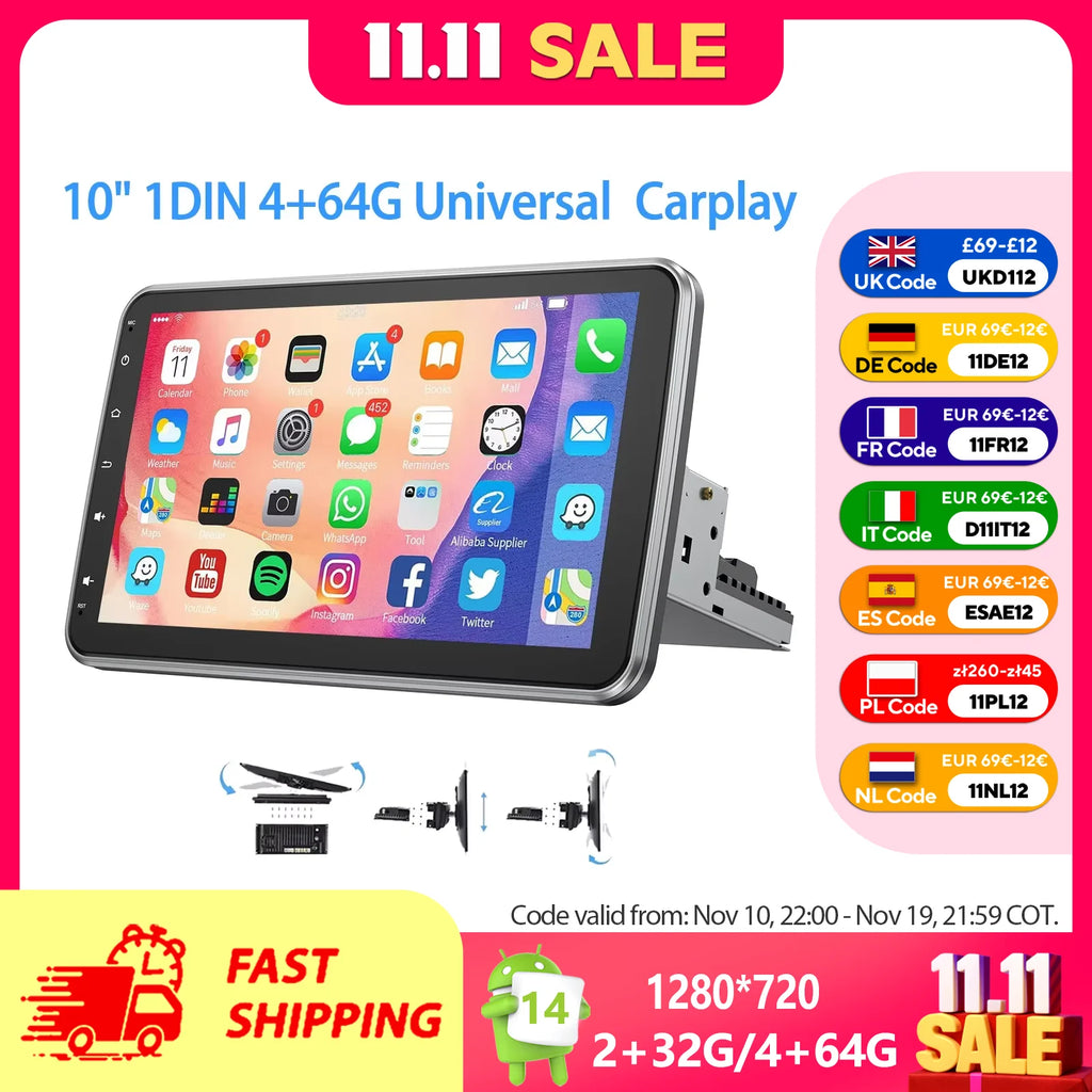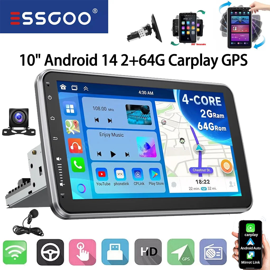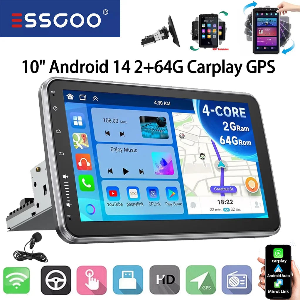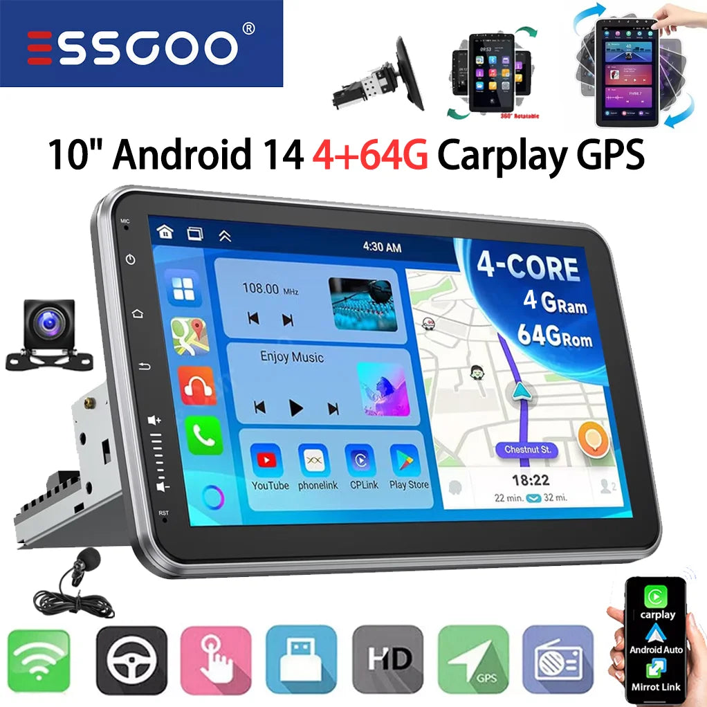 【10.1" Android14 Rotatable Car Stereo】This single din car stereo with high-definition 10.1 inch 2.5D tempered glass mirror touch screen,and which can be rotated by 180°.You can adjust the screen manually to make it display vertically or horizontally. Give you the most comfortable visual and touch experience.This car radio installation size is: 178(L)* 50(W)*145(D)mm.Please confirm whether the size is appropriate before buying.