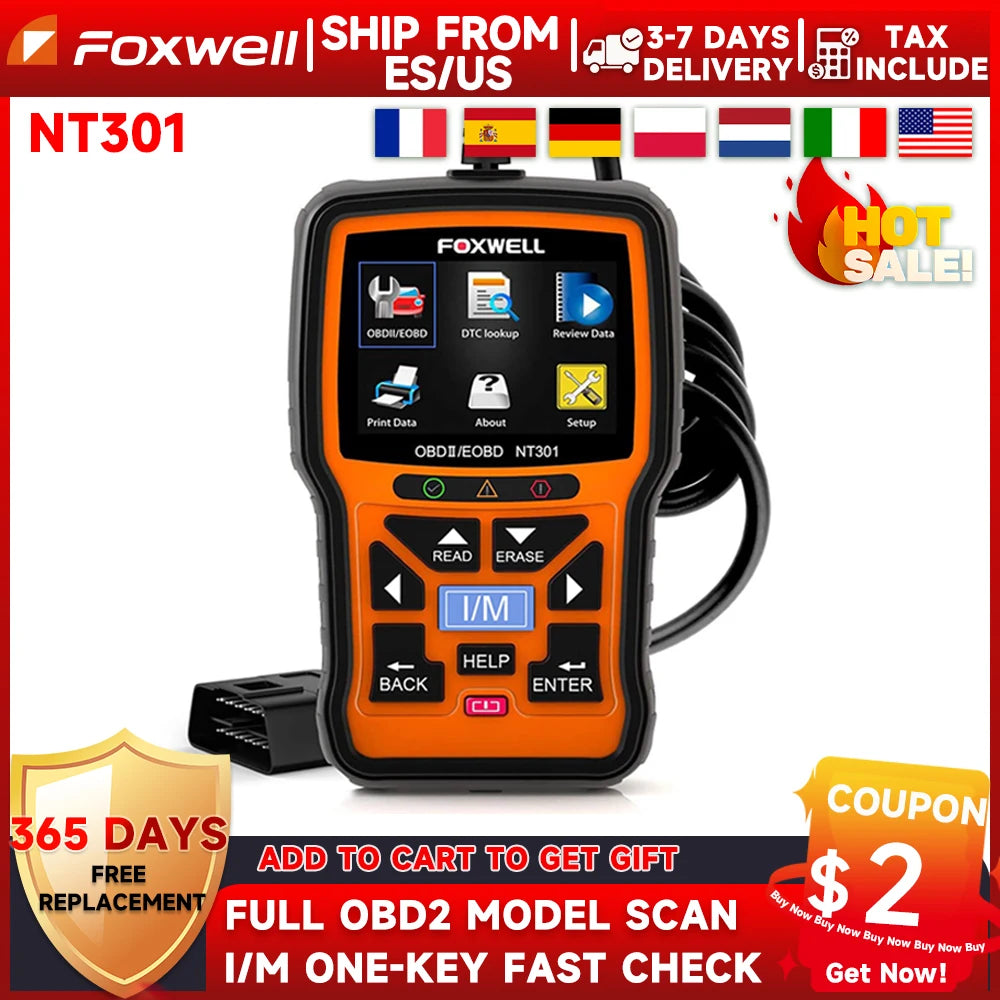 FOXWELL NT301 OBD2 Scanner Check Engine Light Code Reader Professional EOBD Automotive Scanner Car Diagnostic Tool PK ELM327