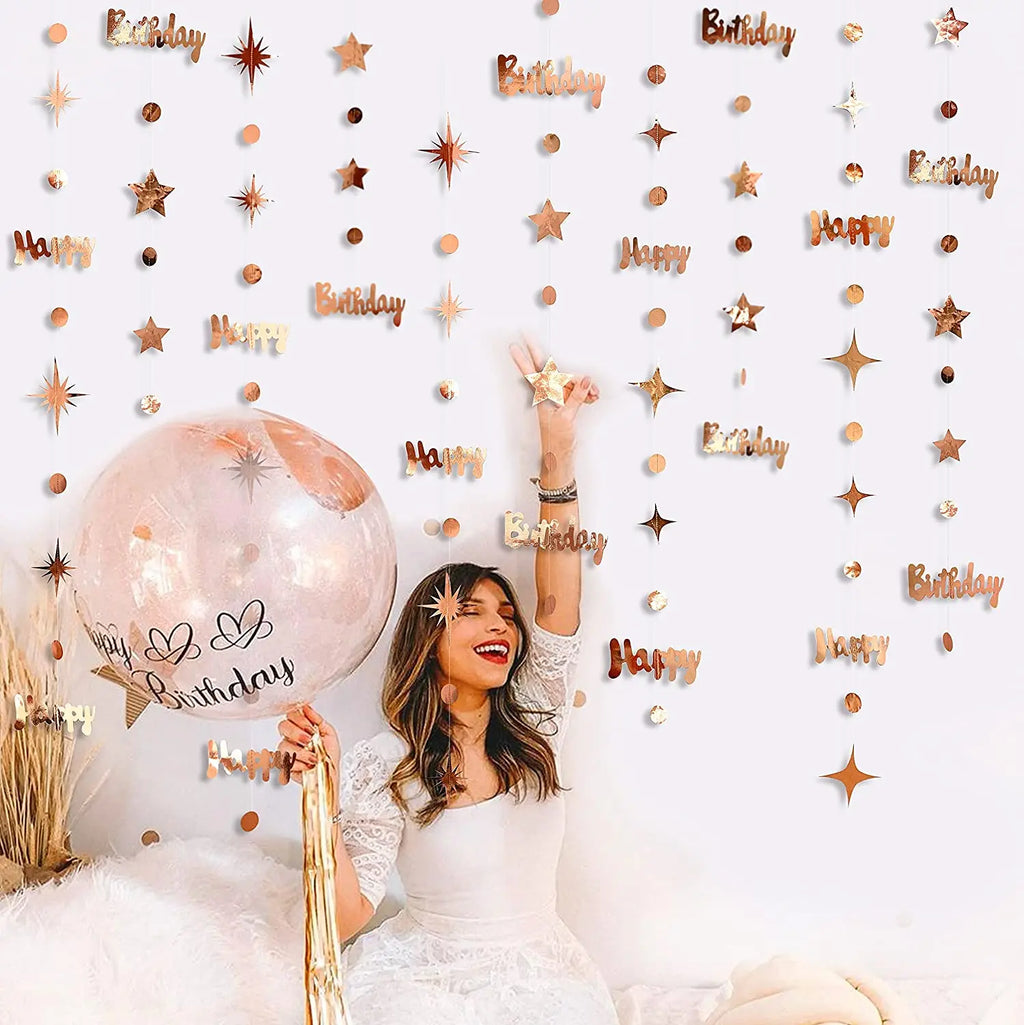 • Environmental Material: Our gold birthday decorations for women/men birthday anniversary garland are made with high quality double sided metallic paper cardstock, carefully hand-made and connected with thread, durable and reusable in nice and bright colors.