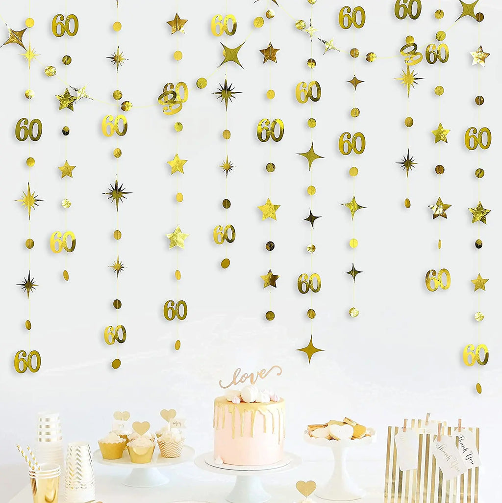 Gold 30th Happy Birthday Party Paper Banners Decorations Number 30 Year Old Circle Dots Twinkle Star Garlands Hanging Backdrops