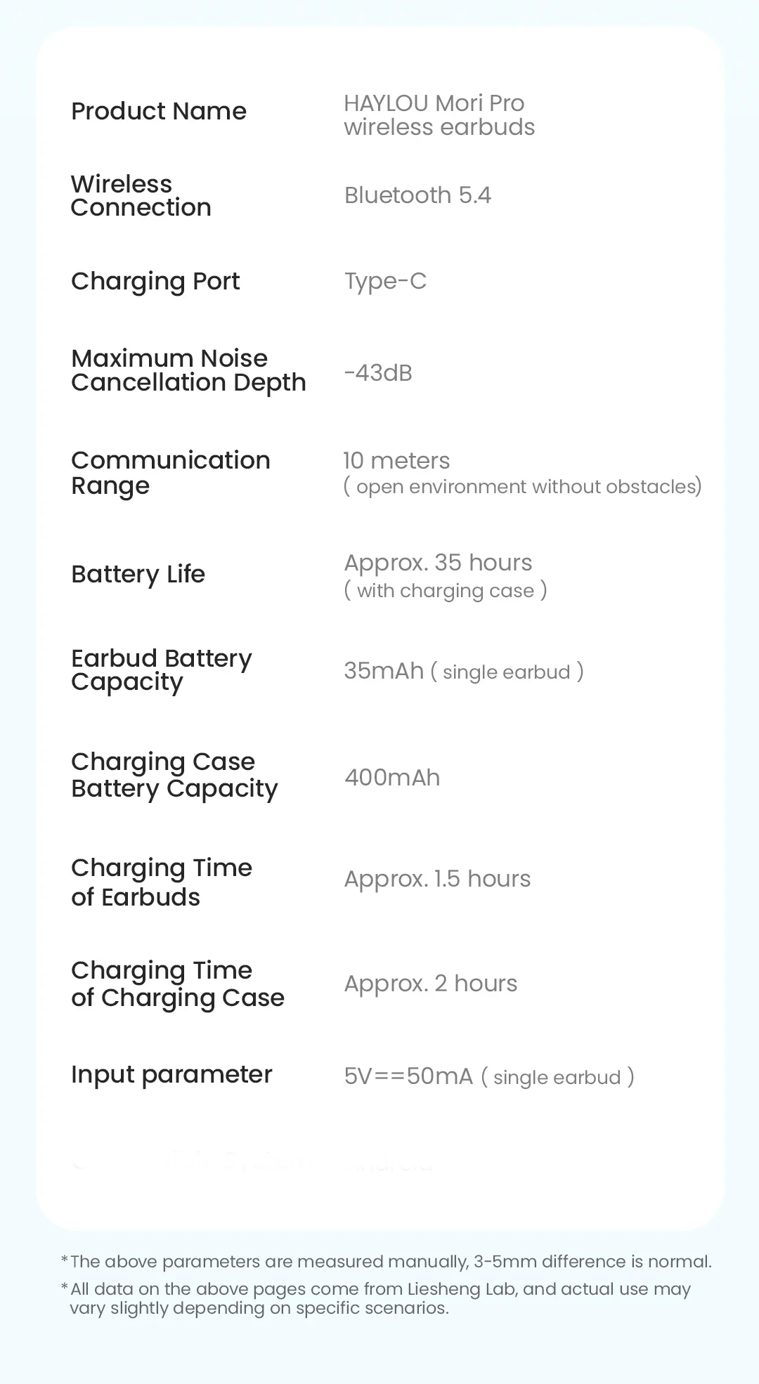 -43dB ANC Noise Cancellation Depth:With a noise reduction depth of up to 43dB*, Mori Pro can effectively reduce noise in a crowded canteen, an airplane cabin or on the subway.