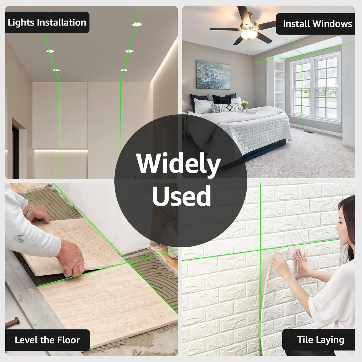 Each time the power button is pressed once, the laser tool projects horizontal lines, vertical lines, and cross lines in sequence.