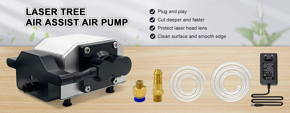 2. Large and steady air output: Adjustable airflow of 0-30L/min, blowing away smoke and residue produced during laser processing, cut deeper、faster and cleaner.