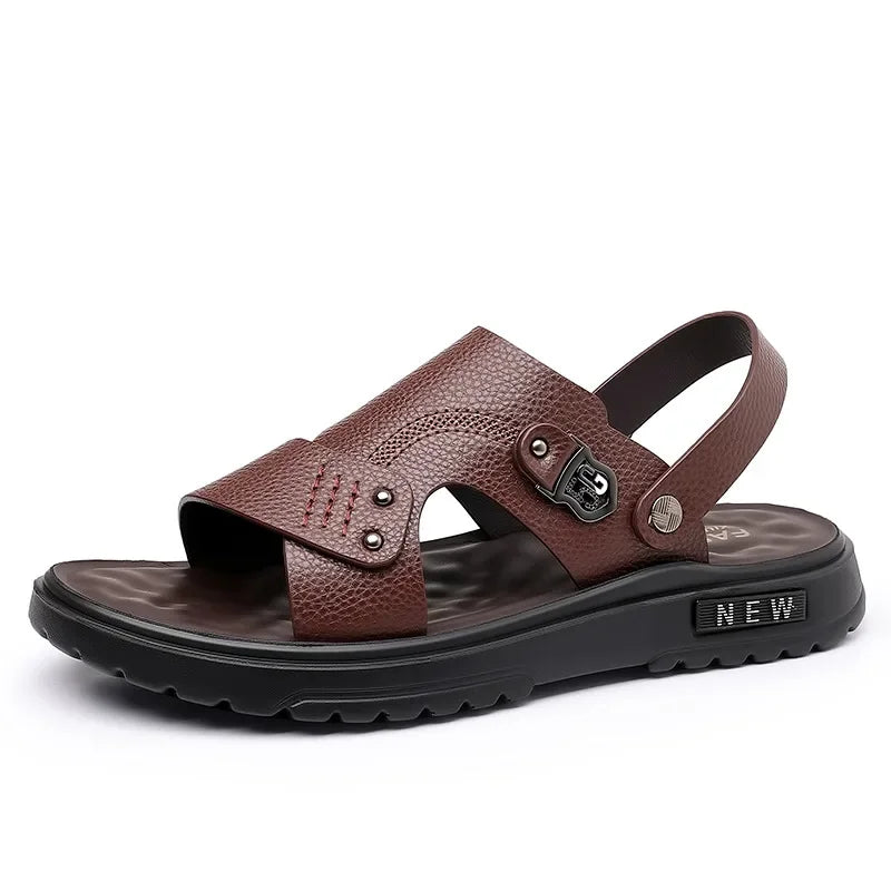 Leather Sandals Men's Cowhide Breathable Summer Casual Shoes Platform Sandals Dual-purpose Sandals Slipper Beach Shoes
