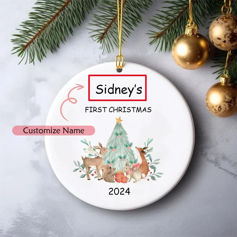 Personalised Custom Woodland baby girl boy first 1st Christmas holiday 2024 Ornament merry Xmas Tree decoration keepsake gift