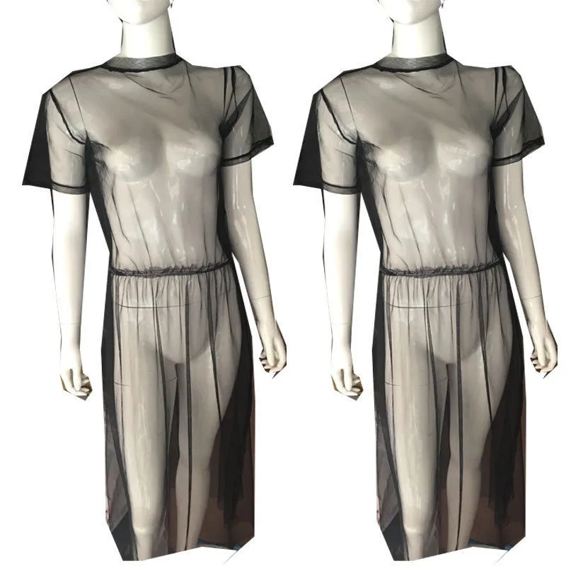 Women Perspective Bikini Mesh Sheer with Elastic Waist, See Through Short Sleeve O-neck Swimwear Smock for SummerSize(cm)