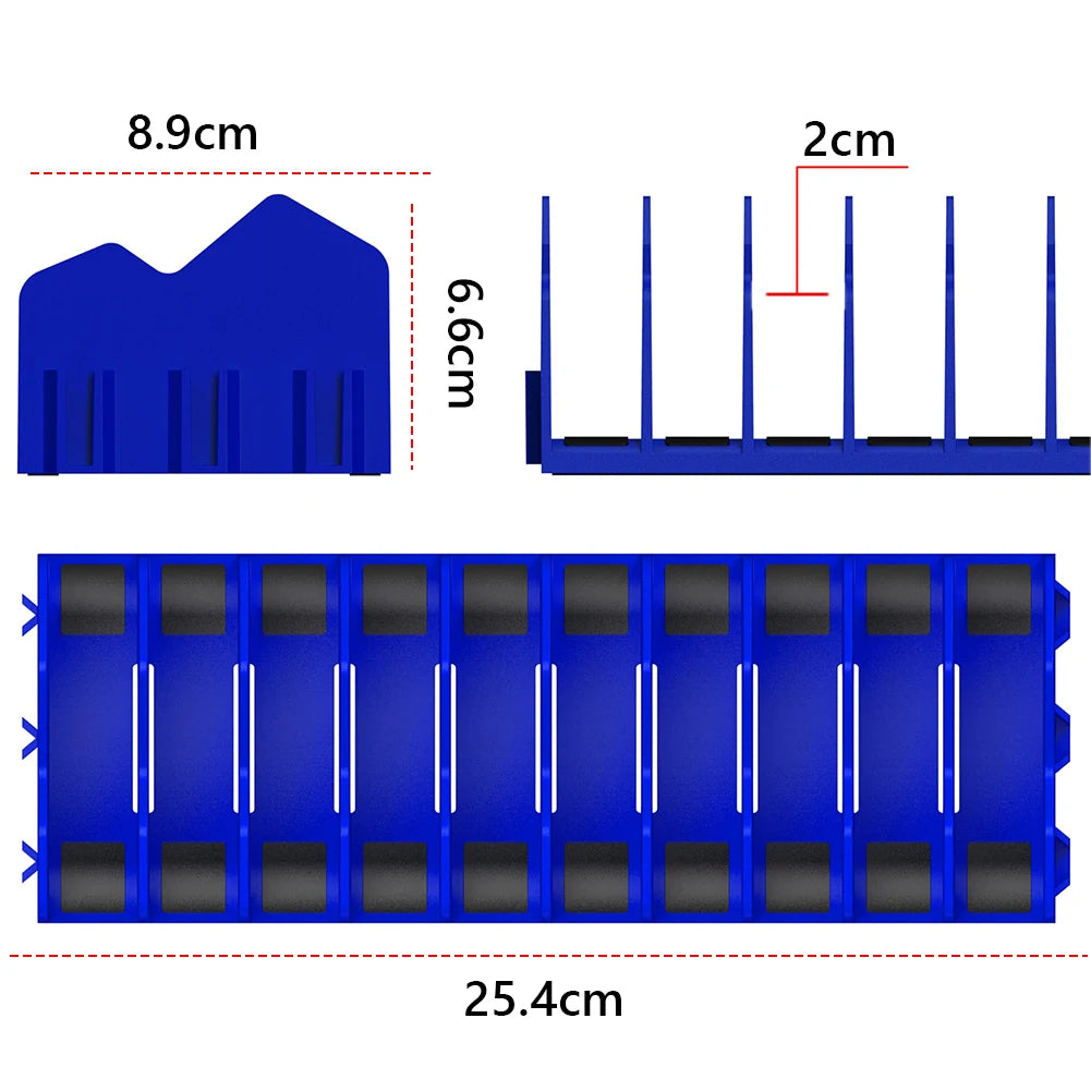 1. Organize and Save Space: This pliers organizer rack features individual slots for pliers, knives, wrenches, and various tools, making them visible and easy to access. It helps declutter messy drawers, providing a neat and efficient organization solution for your workspace. Specification: Origin: Mainland China Material: Plastic Use: TOOLS Size: 25*8.9*6.6cm/9.75*3.47*2.57in