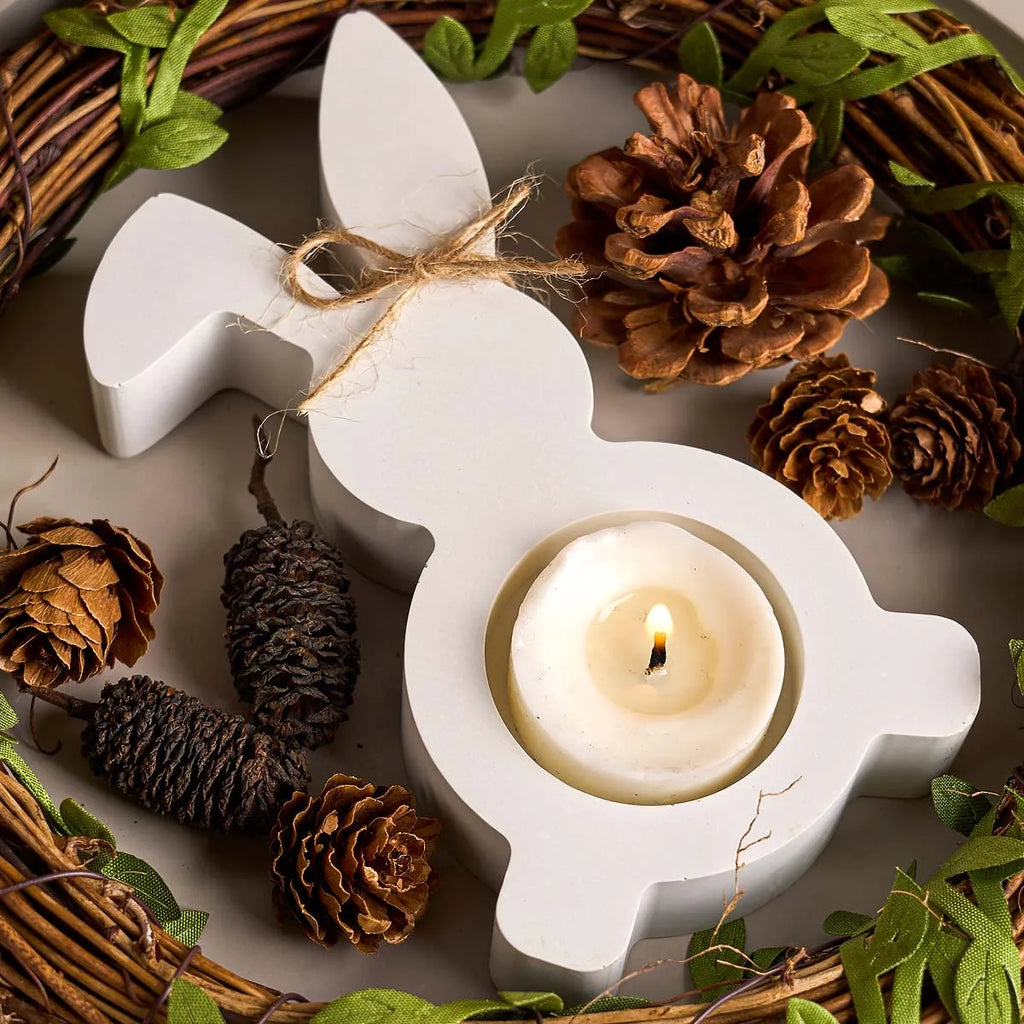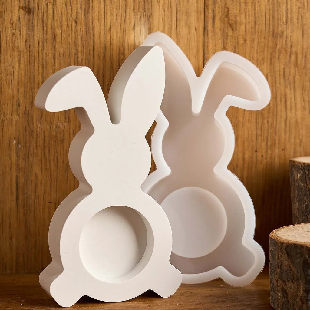 Rabbit Candle Holder Silicone Mold DIY Easter Bunny Candlestick Ornament Craft Gift Making Plaster Concrete Resin Casting Molds