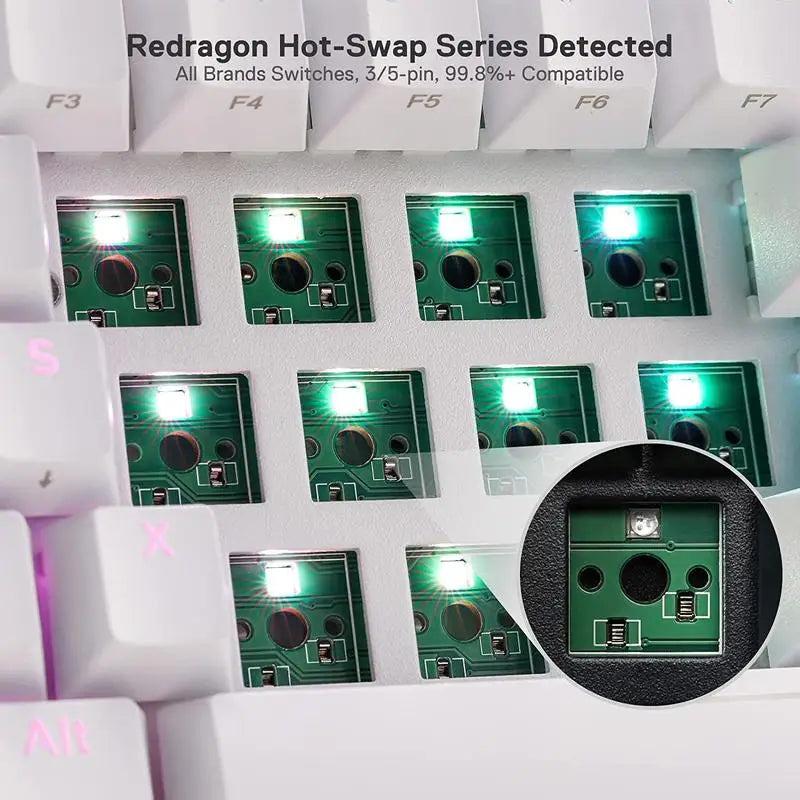 • YES! TRUE HOT-SWAP - The transformative innovation with 99.8%+ switches compatible free-mod hot swappable Redragon keyboard is available now. The unique exclusive structure design of the socket makes the switch mounting easier and less wobbling.