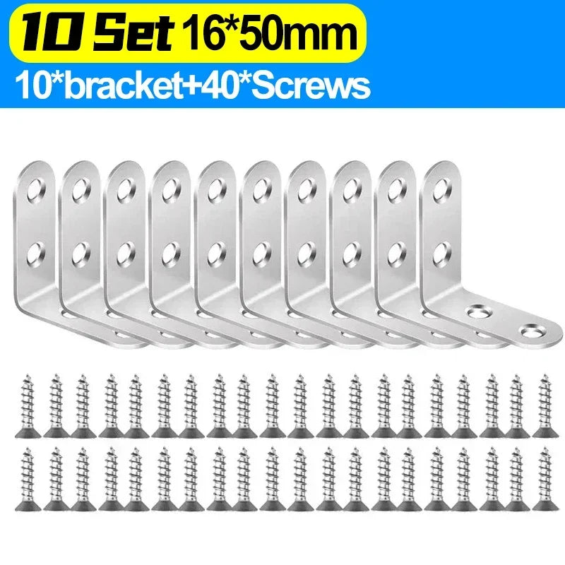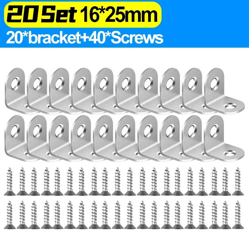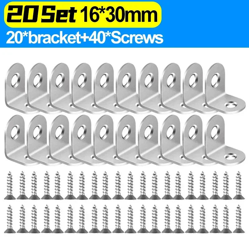 Stainless Steel Corner Bracket L Right Angle Connector Brackets Furniture Cabinet Fastener Corner Brace Shelf Support with Screw
