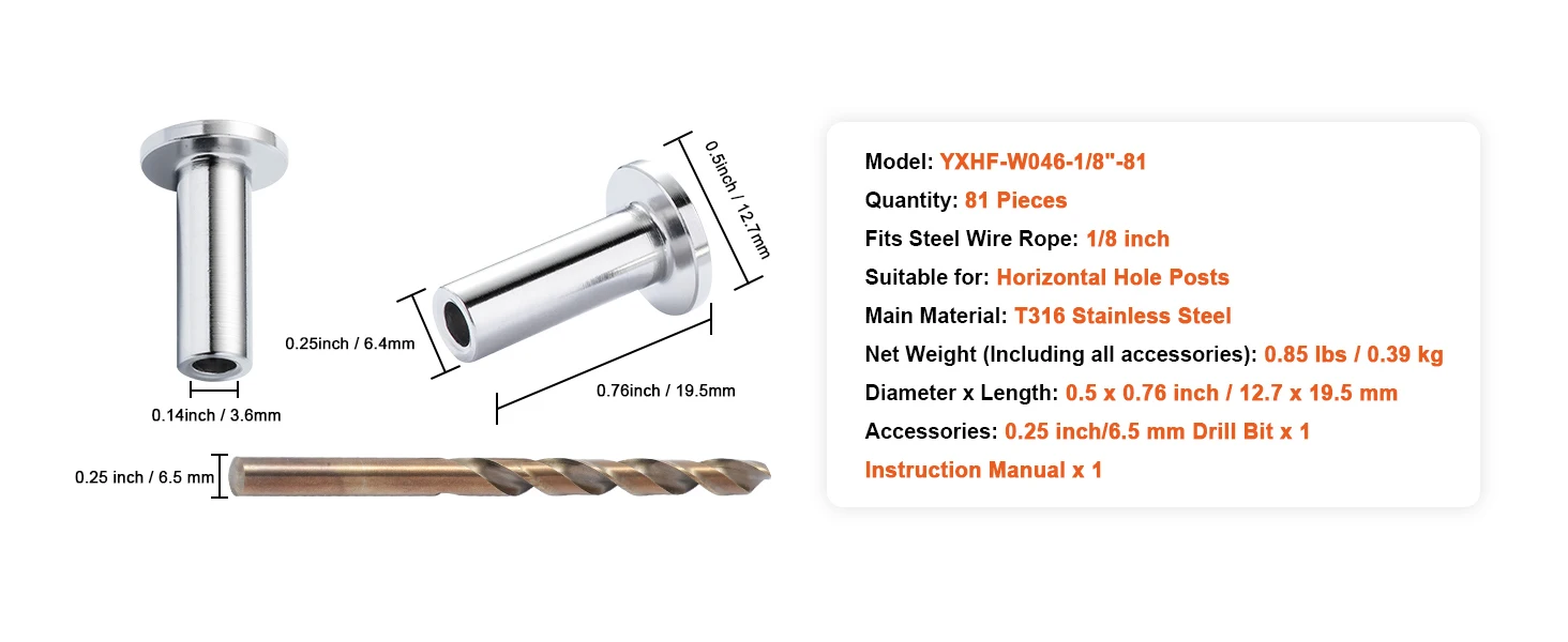 • Aesthetic and Practical: Apart from securing steel cables to reduce railing wear, this railing kit can also cover the horizontal mid-holes, creating a clean and aesthetically pleasing appearance, combining both beauty and practicality.
