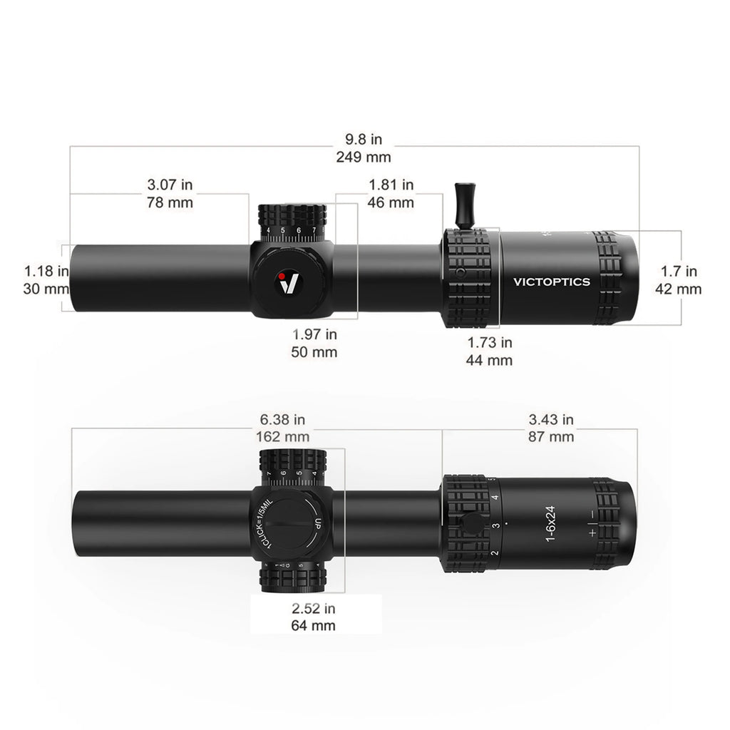 VictOptics S6 1-6x24 SFP Riflescope With Red&Green Illumination Turret lock System Wide Field of View Design For AR 15 .223 5.56