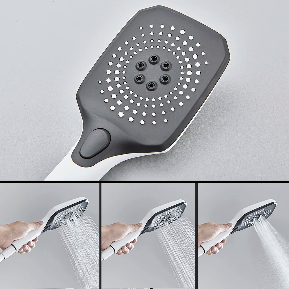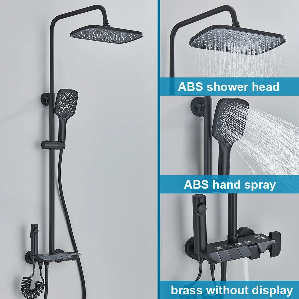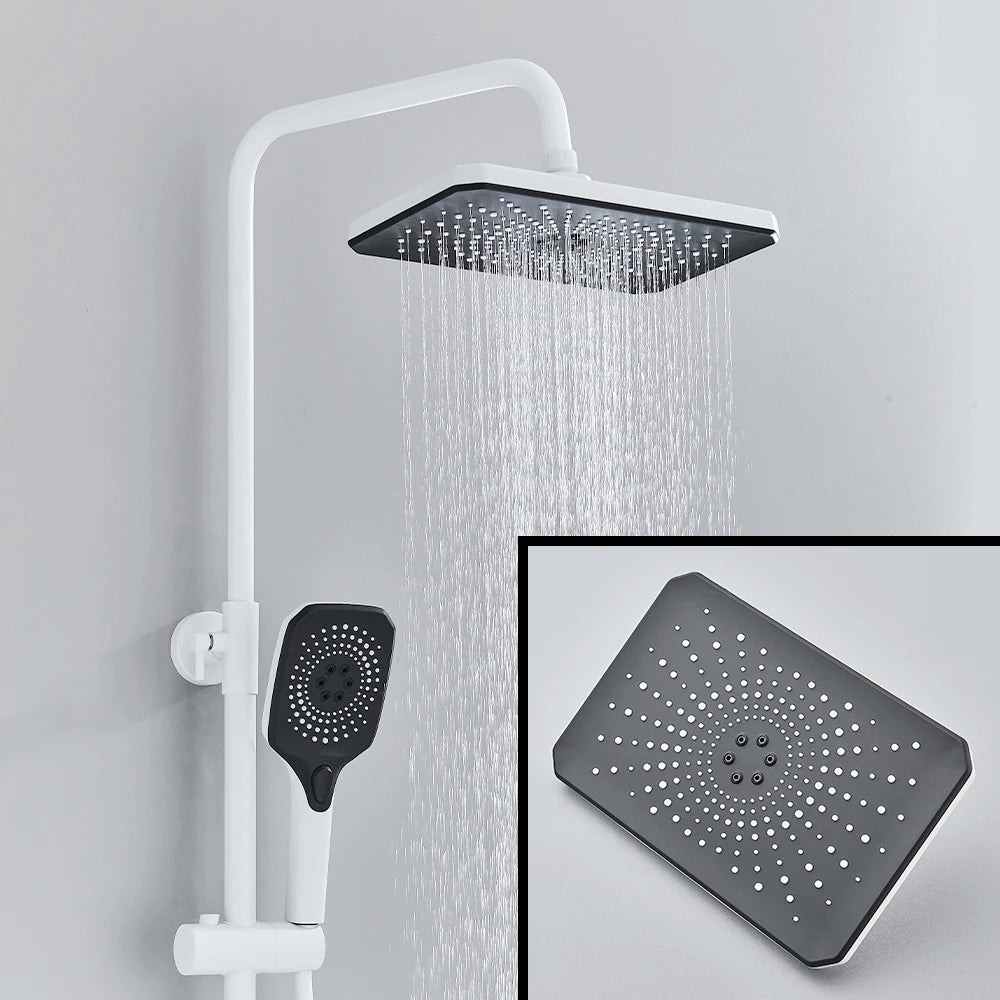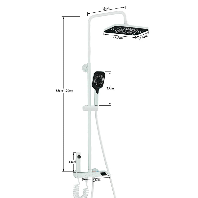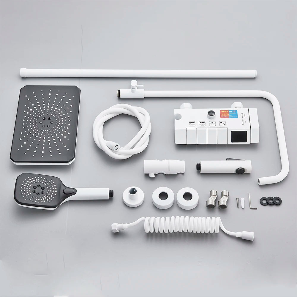 White Bathroom Shower Faucet with Digital Display 4 Function Wall Mount Hot Cold Water Tap Piano Bathroom Shower System