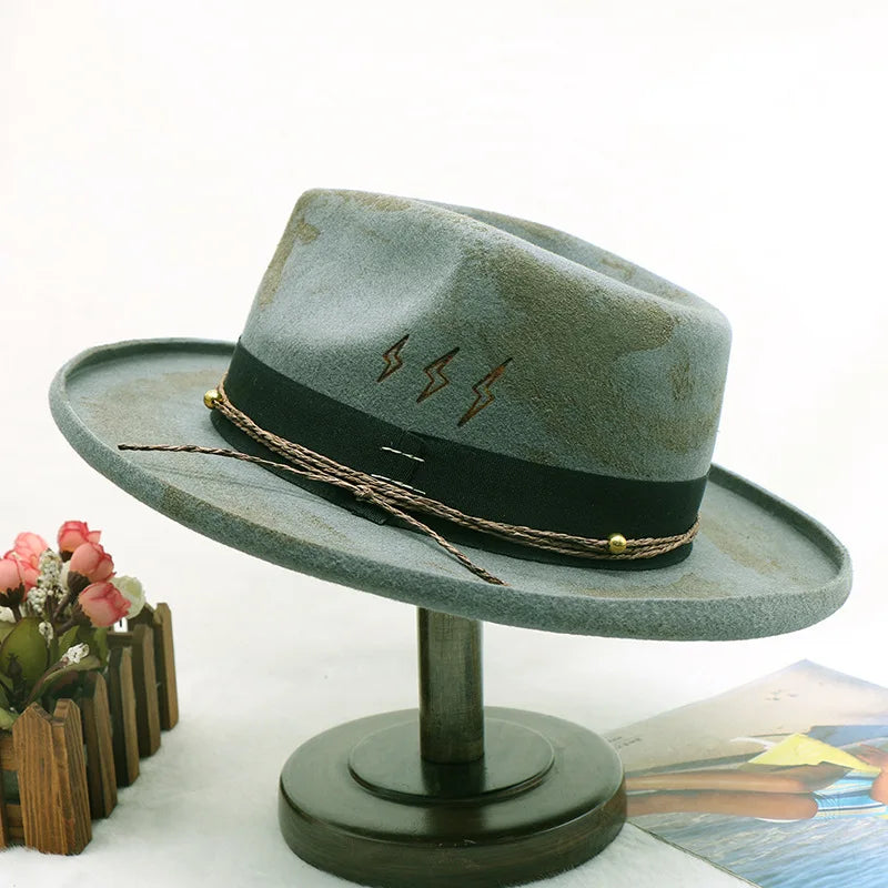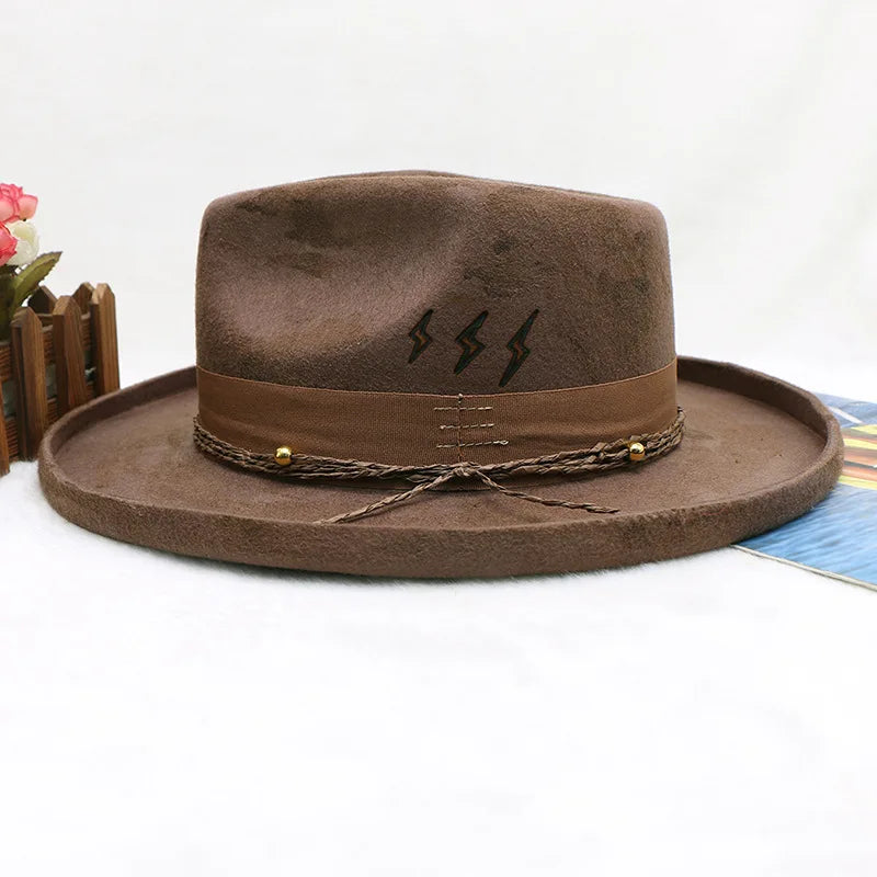 wool cowboy hats men hat felt male fedora with knot felt hat for summer jazz disco hat for men black fedora hat wool hat