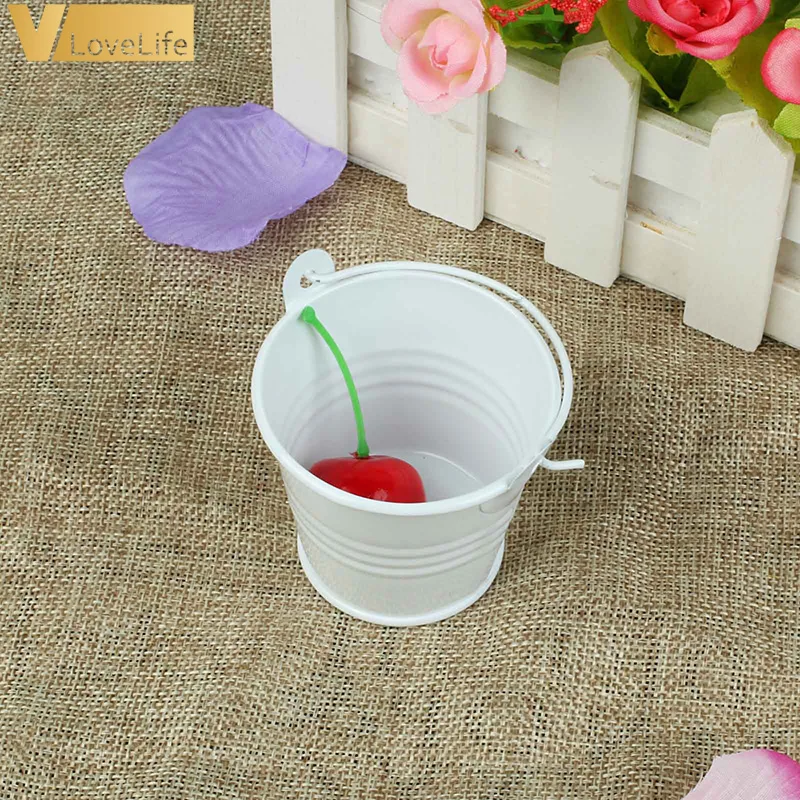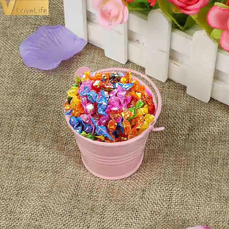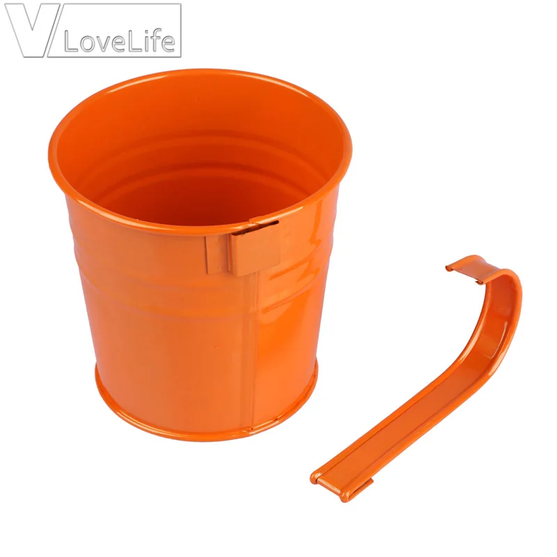 ** Bunte kleine Eiseneimer sind nicht leicht zu verformen, helle Farbe, keine Farbe.