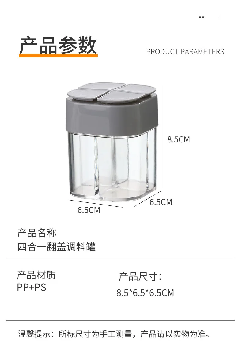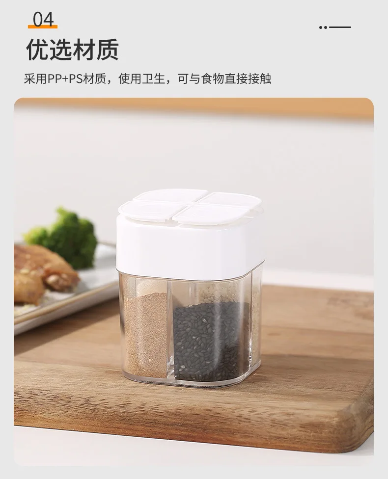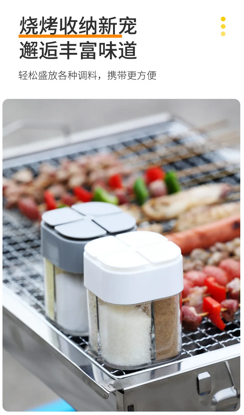 4-in-1-Camping-Gewürzglas mit Deckel, transparenter Gewürzspender, 4 Fächer für das Kochen im Freien, Grill, Salz- und Pfefferstreuer