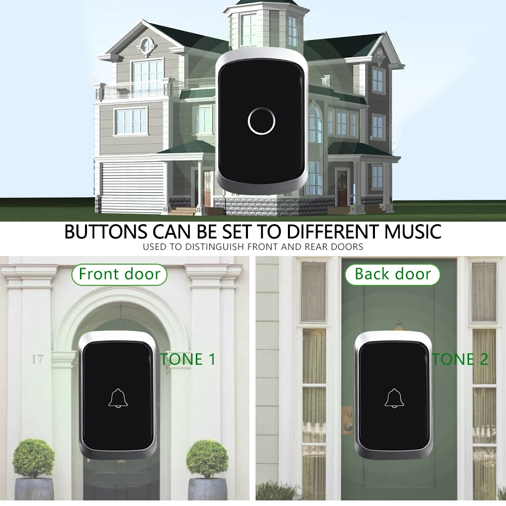 1. Die Taste unterstützt bis zu 6 PCS und der Empfänger unterstützt bis zu 100 Stück. 2. Der Sender hat kein Schraubenfutterdesign und kann ohne Gummiring wasserdicht und staubdicht sein. 3.Der Sender VERWENDET eine 23A12V-Alkalibatterie (Batterie nicht im Lieferumfang enthalten). 4. Empfängerspannung: 110-220V. 5. Der Empfänger ist in einer Vielzahl von Steckern, US/EU/UK-Steckern und AU-Adaptern erhältlich, die für die meisten Länder geeignet sind. 6.Empfangsentfernung: 300 Meter im offenen Bereich. 7. Das Funksignal wird durch Hindernisse beeinträchtigt. Je mehr Hindernisse, desto schwerwiegender der Signalverlust. 8.Receiver hat 4 Stufen 20-80db, 36 Musik zur Auswahl. 11. Größe: Sender 77 x 46 x 20 mm, Empfänger 90 x 56 x 20 mm. HINWEIS: Der Knopf kann nicht an einer Eisentür angebracht werden, da er das Signal stört.