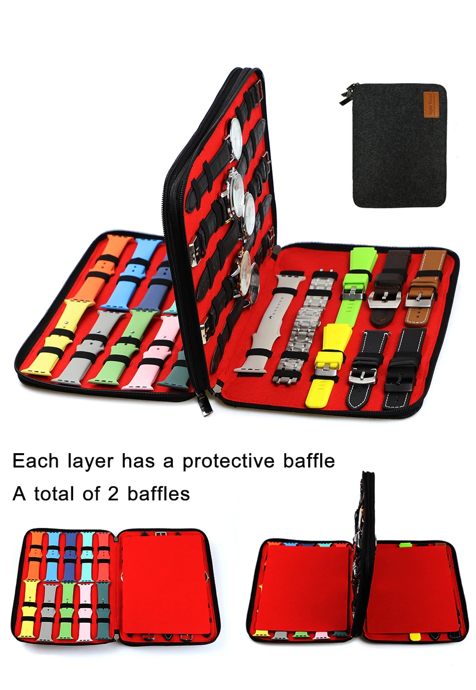 Das tragbare Uhrenetui mit Reißverschluss ist einfach und bequem zu bedienen. Perfekt für den privaten oder geschäftlichen Gebrauch. Vintage und schönes Design, machen es voller künstlerischer Persönlichkeit. Die Box ist in zwei Schichten mit Trennwand und gepolsterter Mitte unterteilt, um die Uhren oder Armbänder vor Abrieb zu schützen.