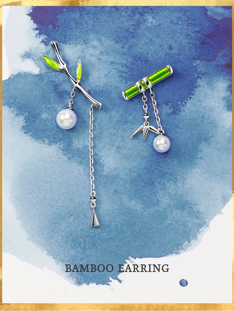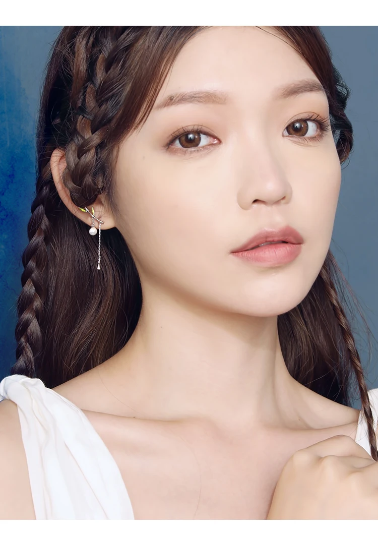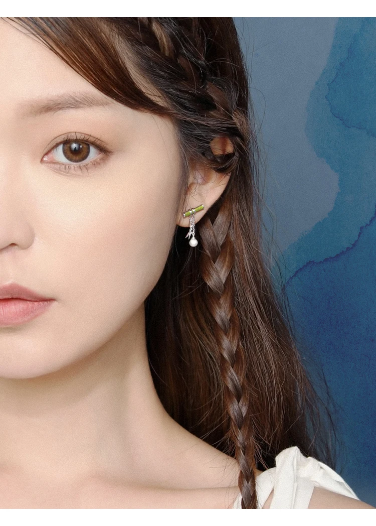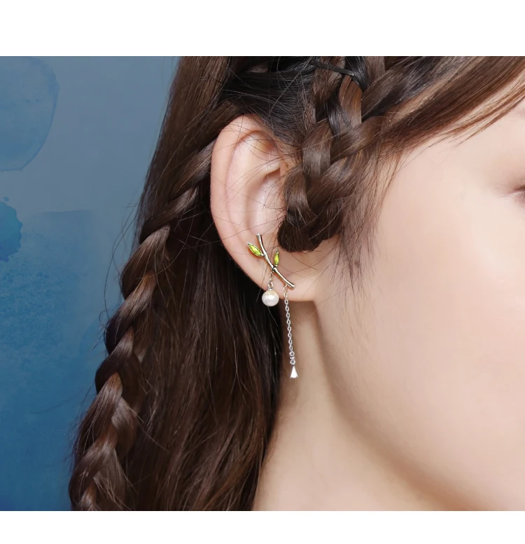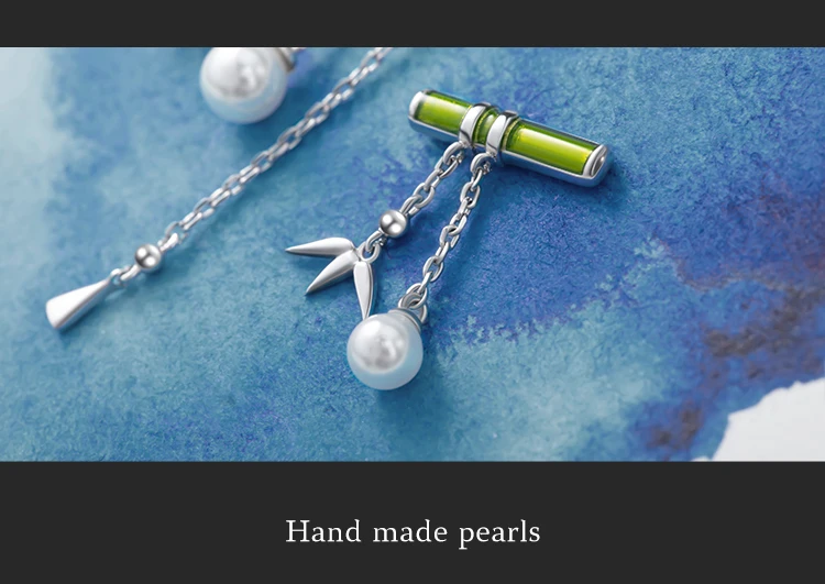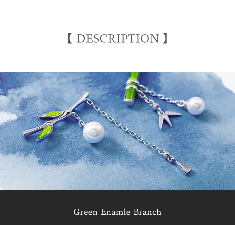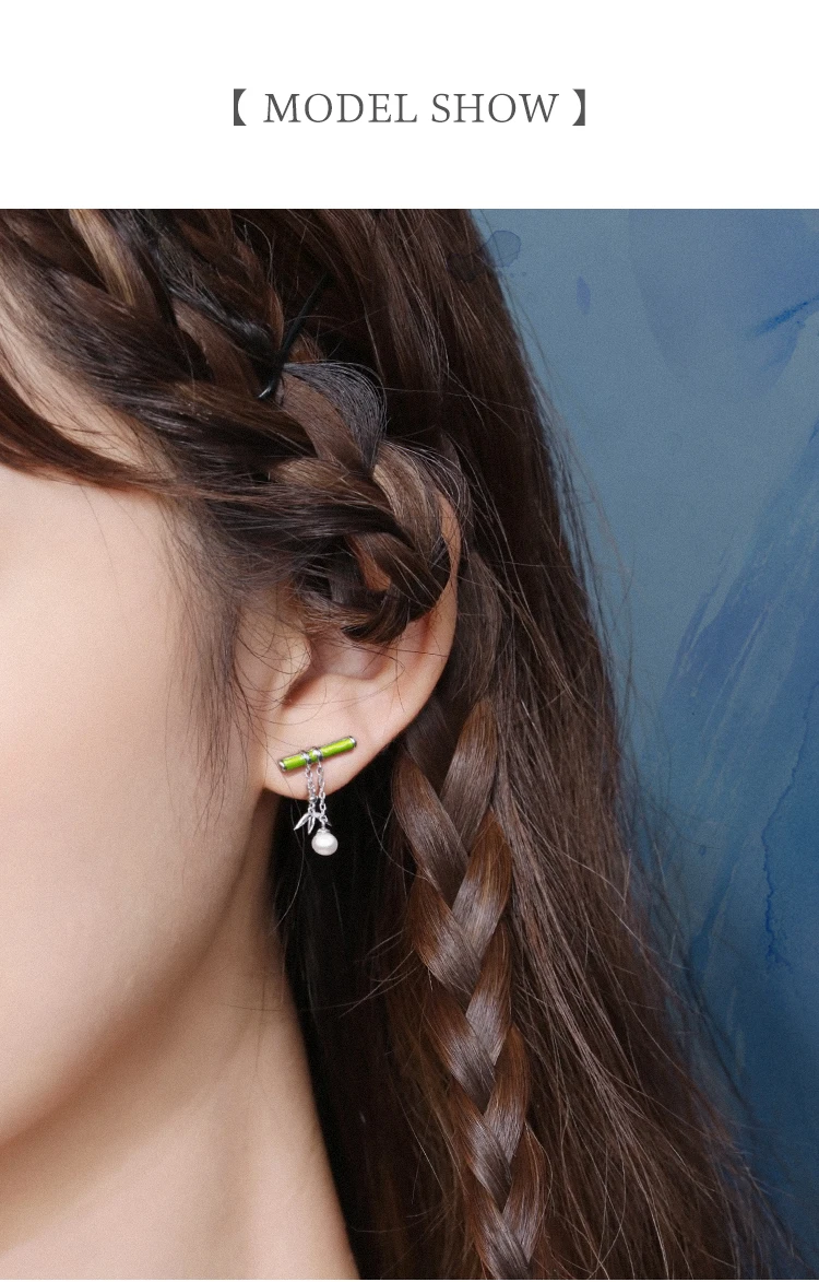 Thaya Emaille Frauen Ohrring Grün Bambus Ohrring Baumeln Mit Perle Retro Nette Ohrringe Für Frauen Silber Ohrring Modeschmuck