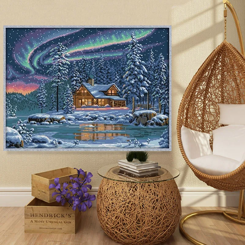 Die Aurora Borealis-Stickerei-Kreuzstichmuster-Kits, bedruckte Leinwand, 11 Karat, 14 Karat, Stickerei-Gemälde, Handarbeiten, Kreuzstich