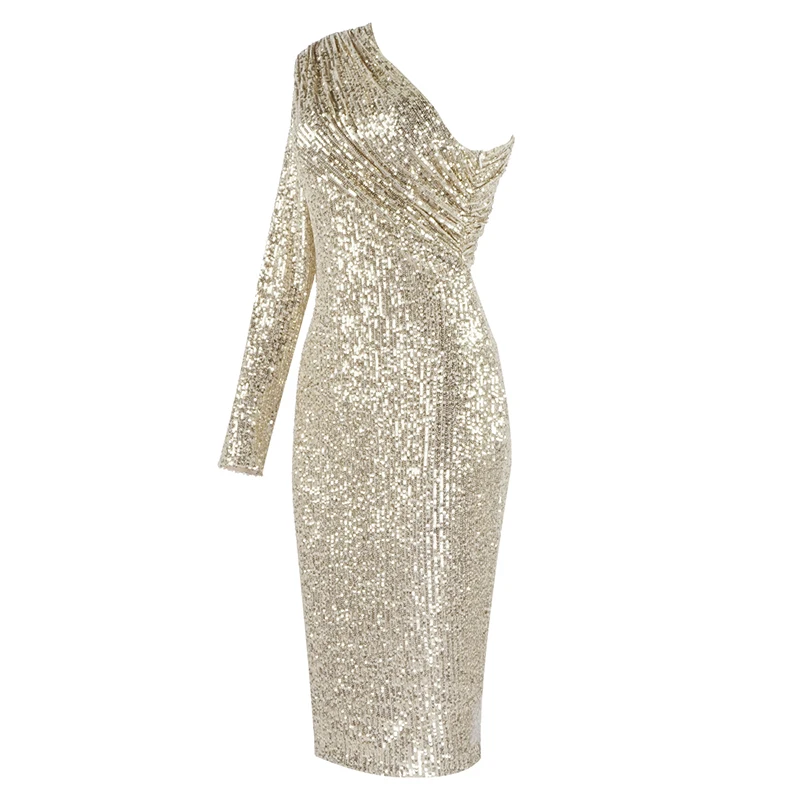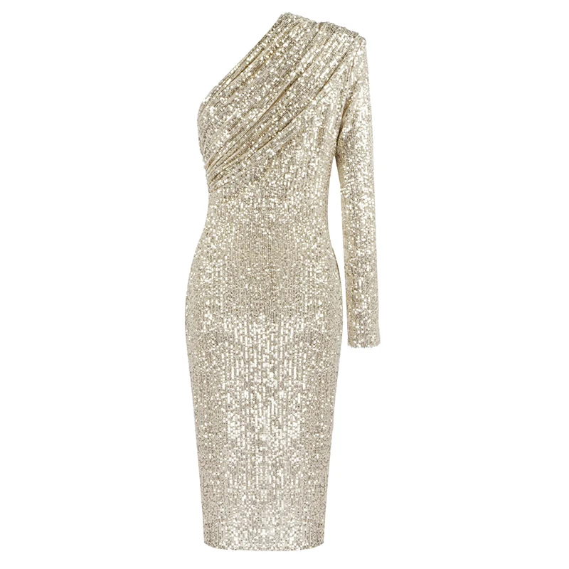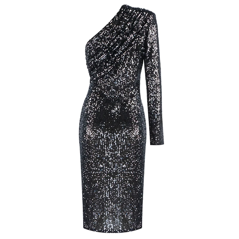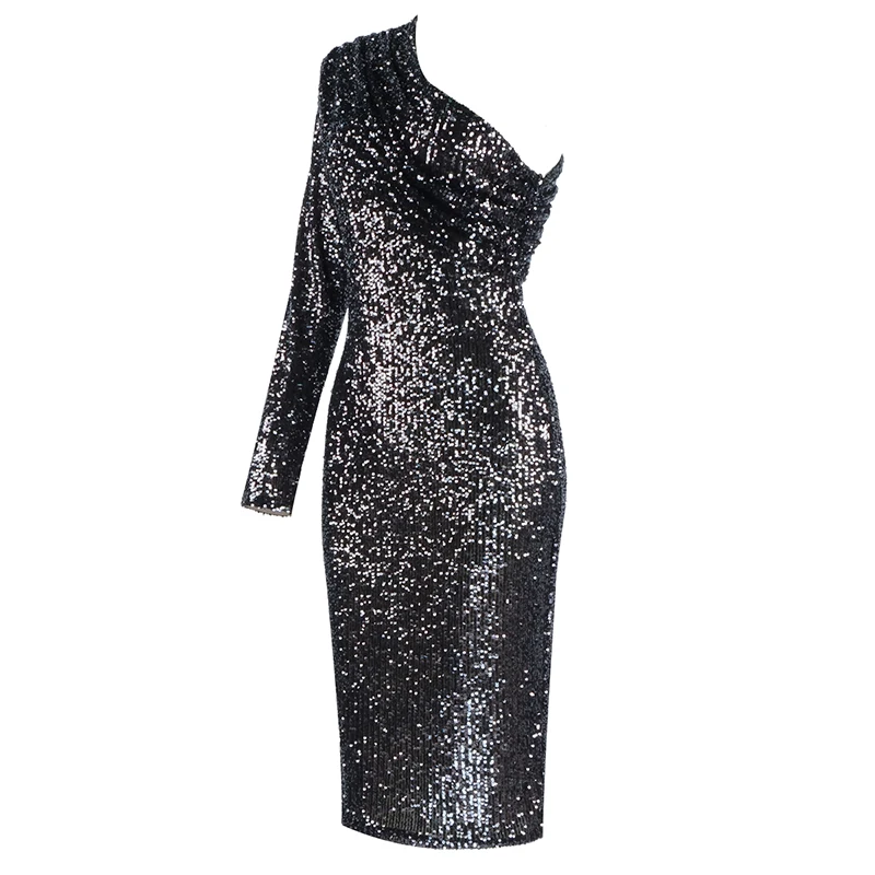Wholesale Sexy Long Sleeve Mesh Sequins Sparkly Glitter Women Winter Dress 2021 Designer Evening Party Dress Vestido