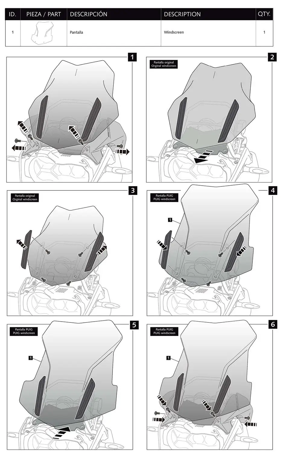 Große Windschutzscheibe: 5 mm Dicke. Höher als das Original (mm): +110.