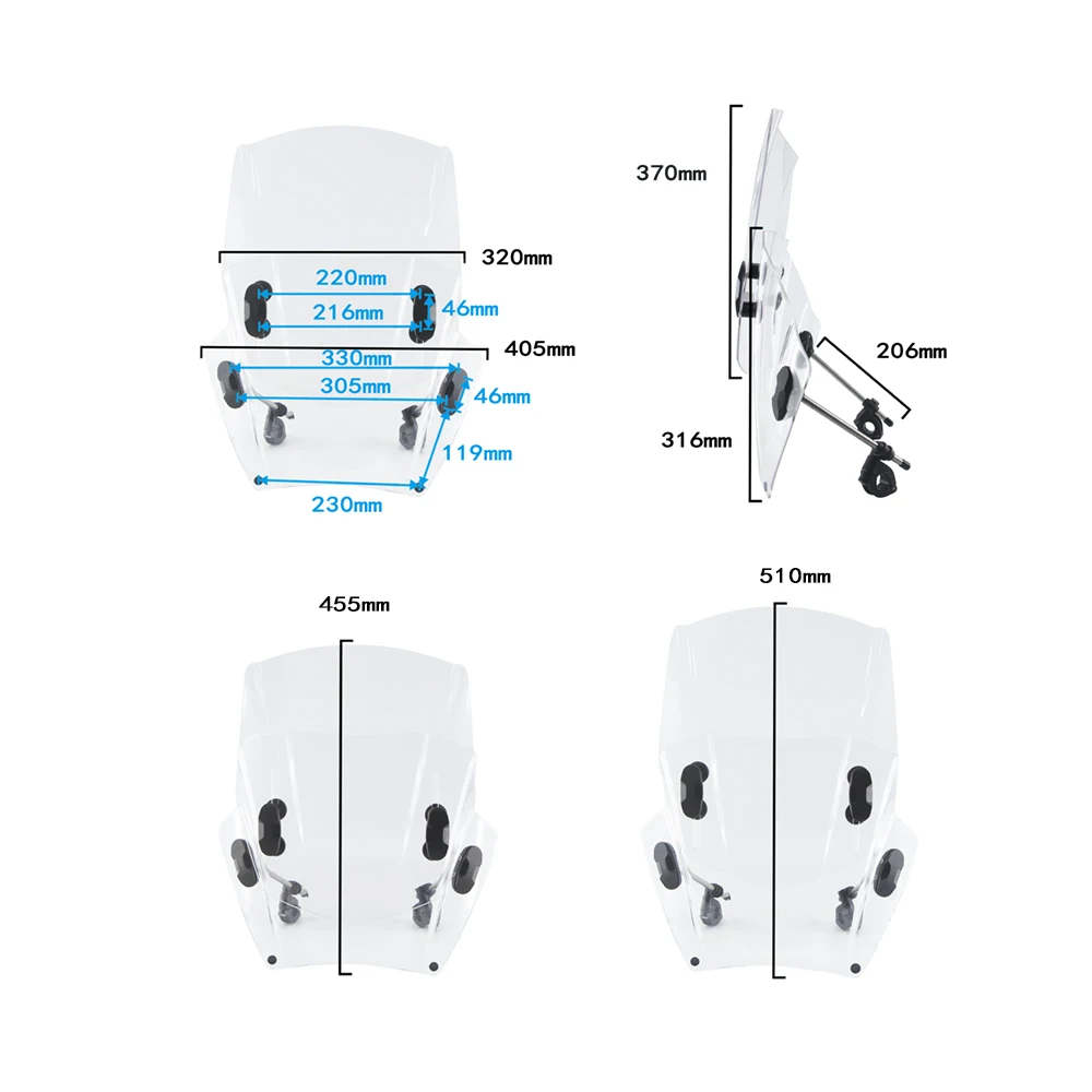 Option E: 1 Satz verstellbare Windschutzscheibe mit Halterung