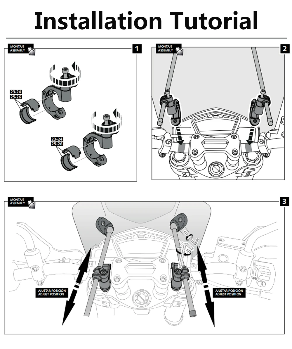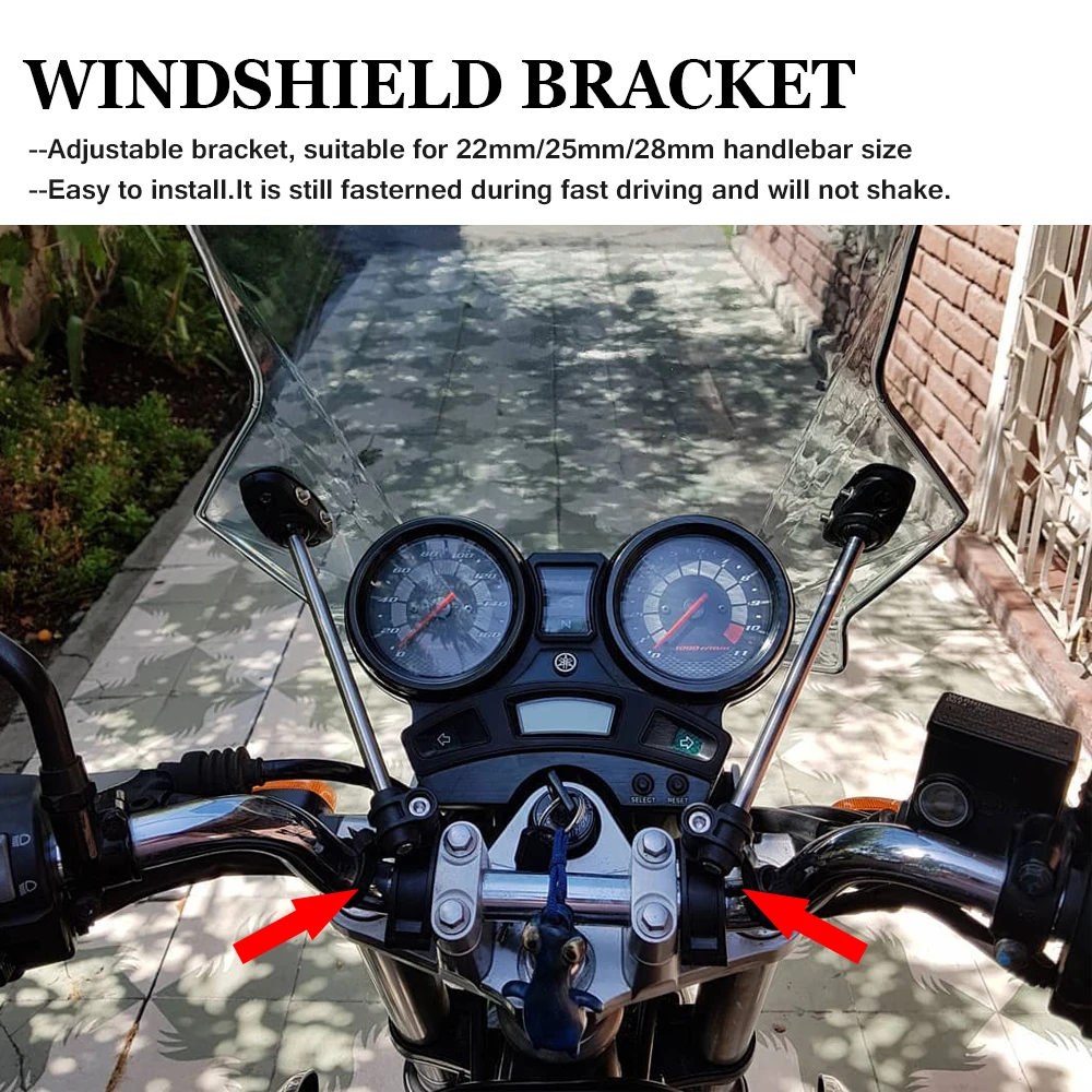 BIG Windshield ---- Aufgrund der unterschiedlichen Modellversionen weicht der Abstand zwischen den beiden Löchern etwas vom Original ab. Wenn Sie auf diese Situation stoßen, können Sie es mit der Windschutzscheibenhalterung verwenden, um dieses Problem zu lösen.