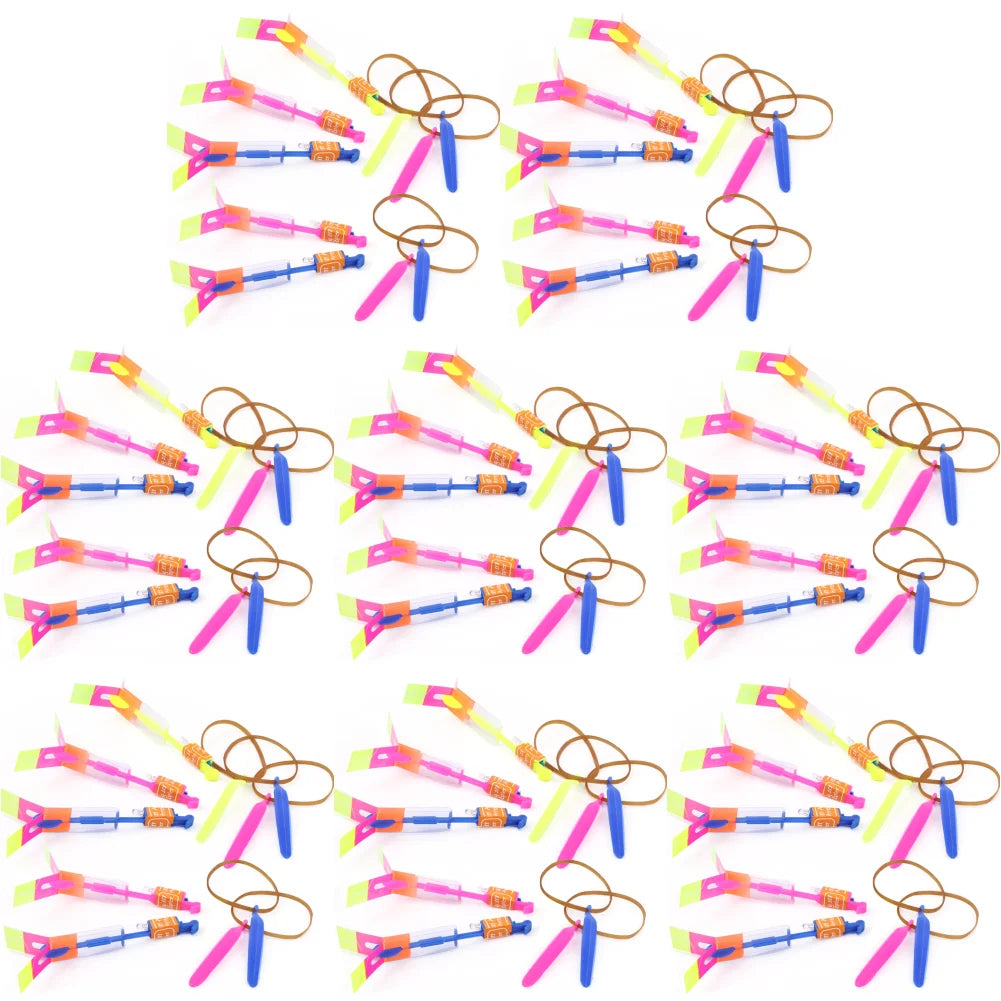 100-10PCS Amazing Light Toy Arrow Rocket Helicopter Flying Toy LED Light Luminous Slingshot Toys Rubber Band Catapult Fun Party